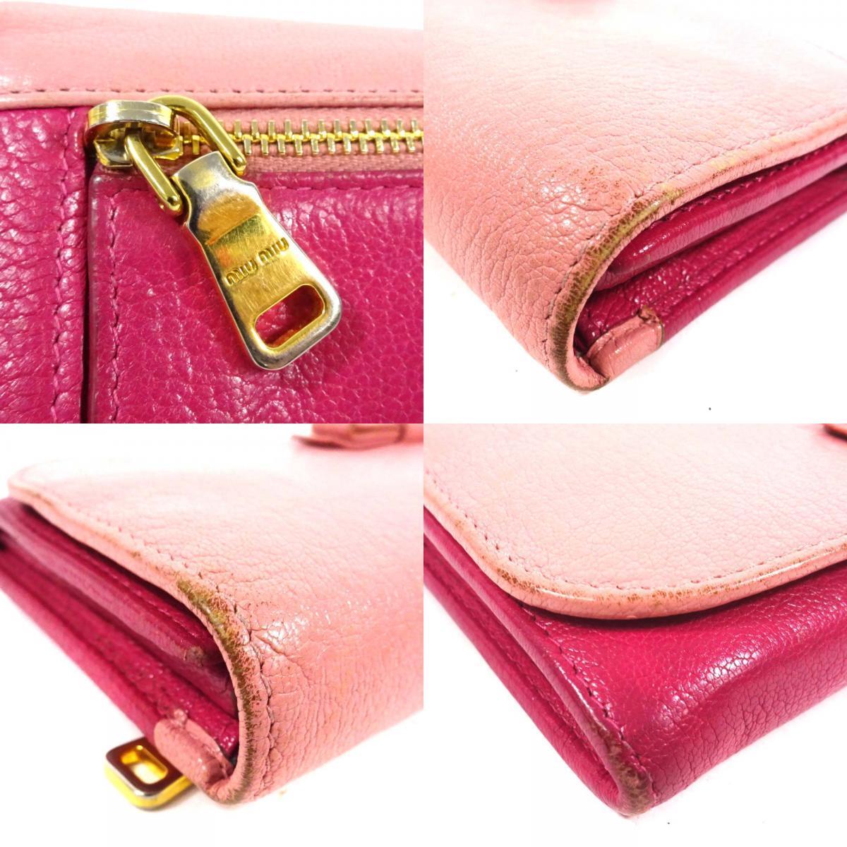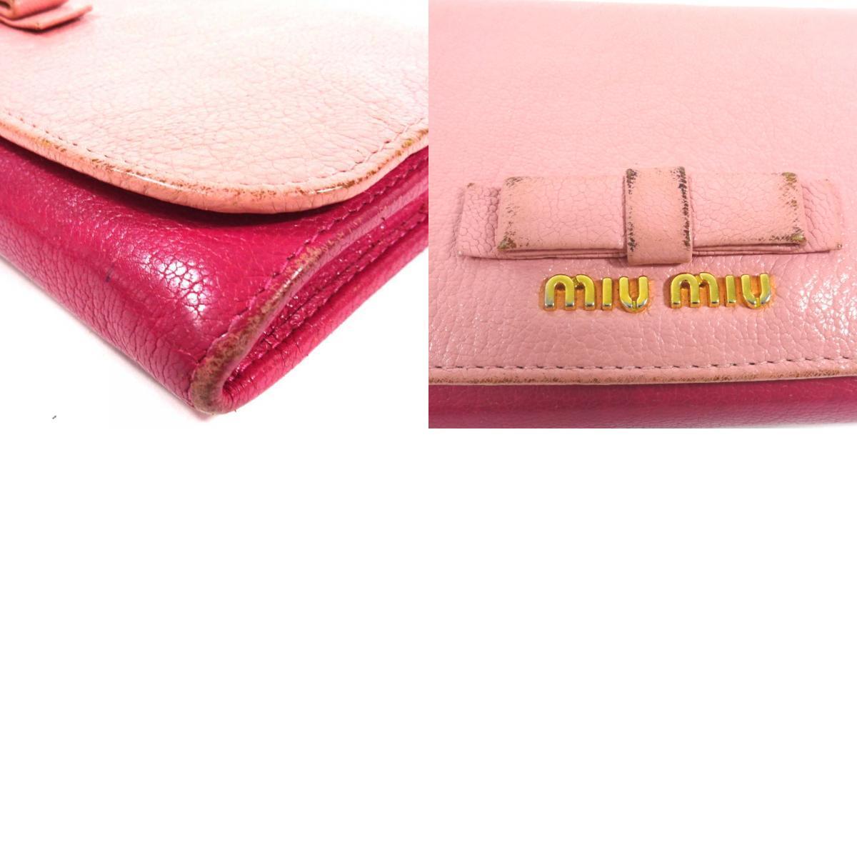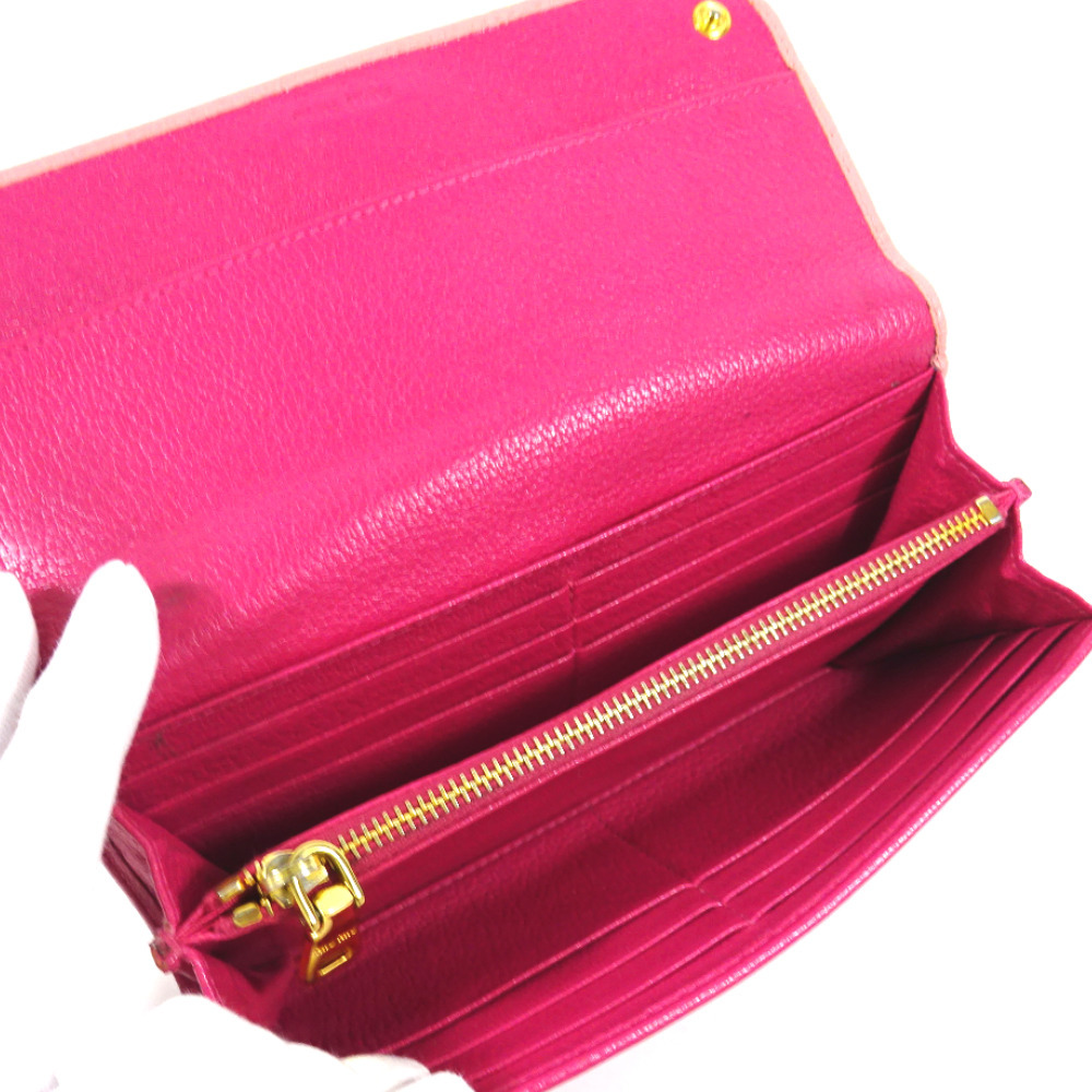 ミュウ ミュウ リボン バイカラー 長財布 レディース レザー ピンク ゴールド金具 中古 Miu Miu