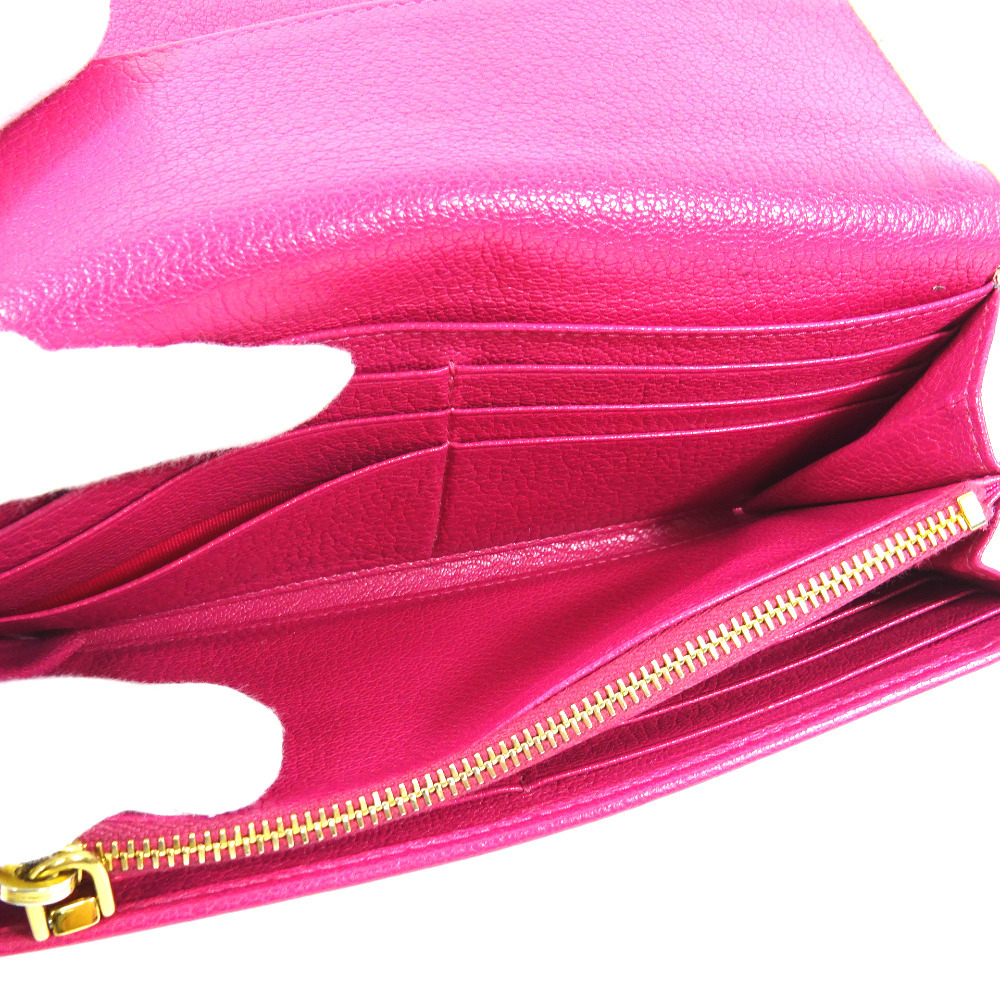 コメント | ピンクカラーにフロントには大きなリボンとロゴ金具が施され、可愛いを詰め込んだキュートな中に高級感漂うお財布です。開閉口は大きく開き、サッと出し入れ出来ますよ。 ポケットも豊富ですので収納力抜群です。 ピンクのバイカラーがバッグの中でも存在感を放つ事間違いなし!! 是非、この出会いをお見逃しなく!! |