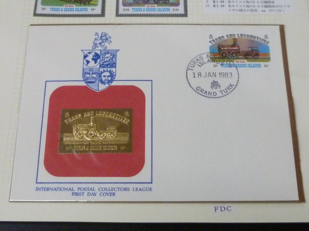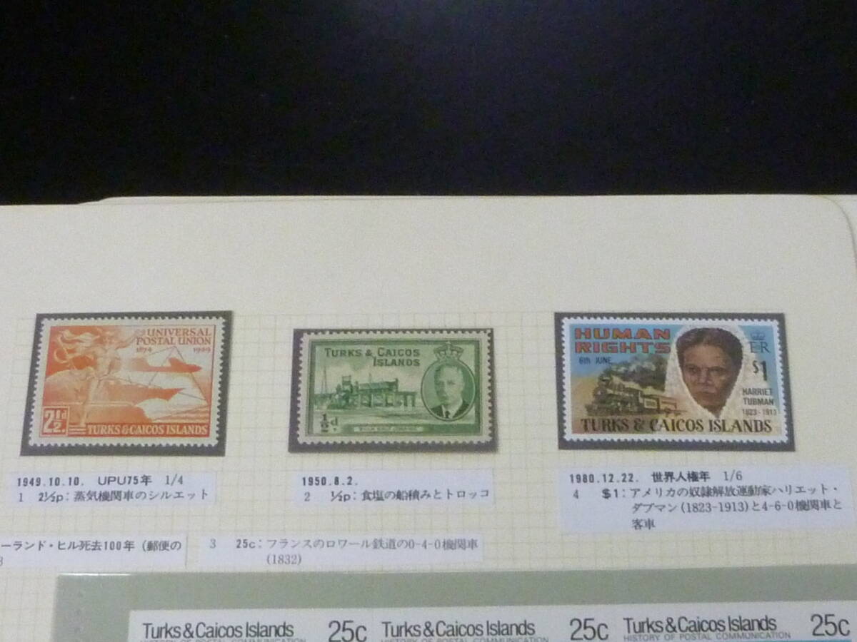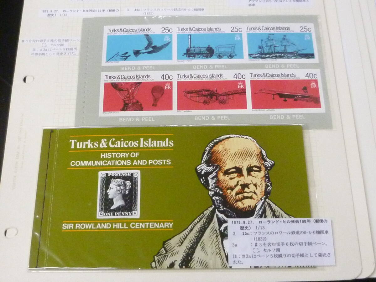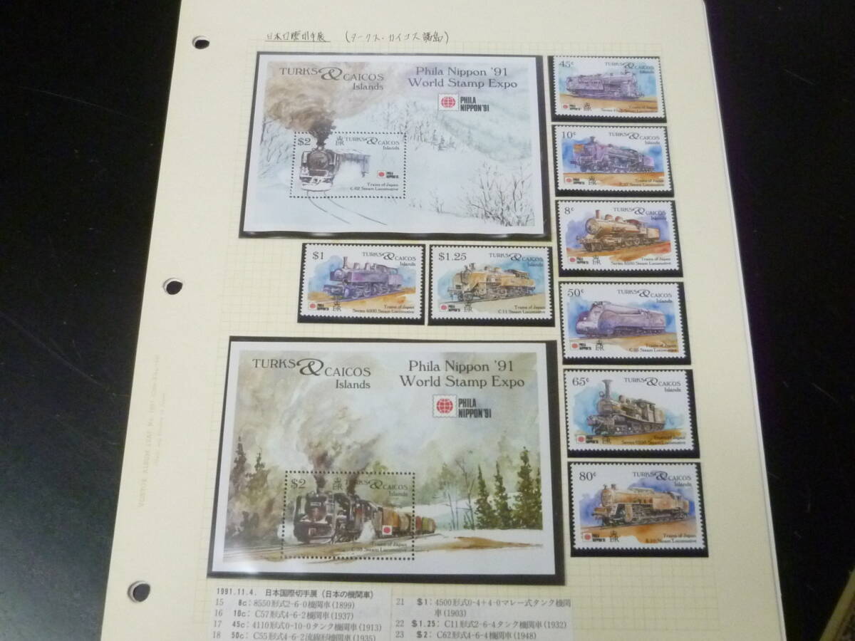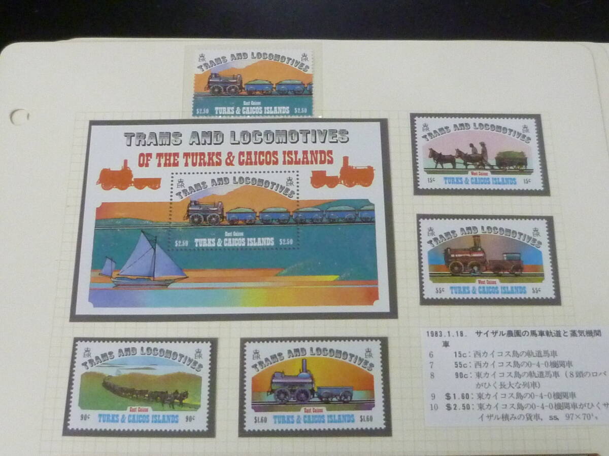 鉄道№63-3 タークスカイコス切手 1949-91年 各種 鉄道関連 単片・切手帳・各シート等 計6リーフ 未使用NH主体・VF ※説明欄必読