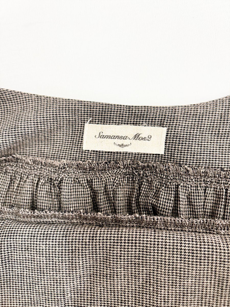 Samansa Mos2 sm2 サマンサ モスモス 千鳥柄 麻混 リネン キャミ ワンピース コットン Js7-88