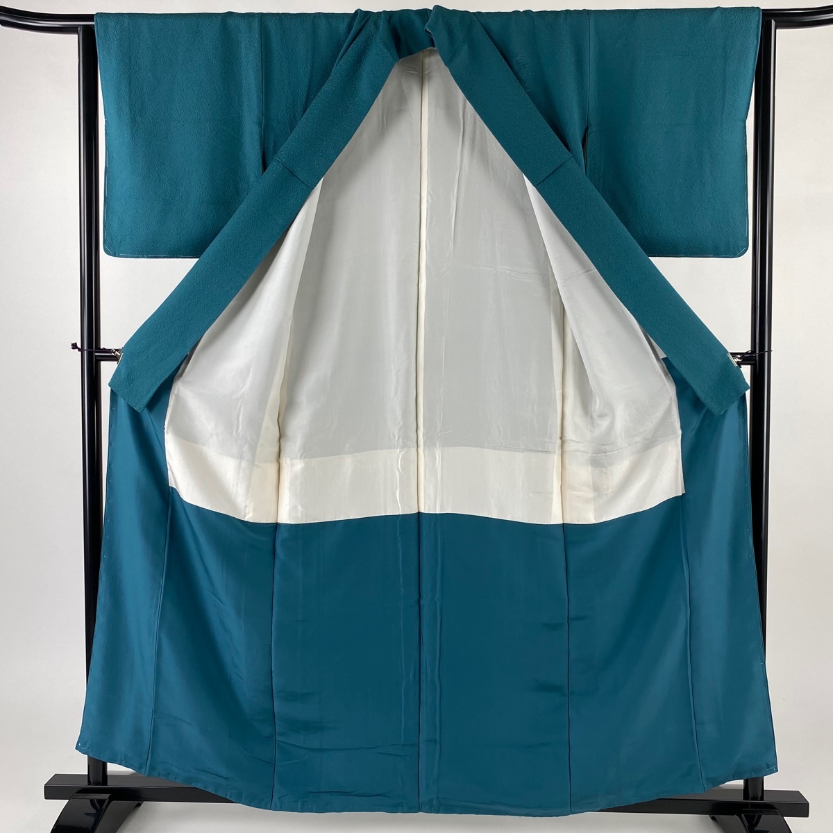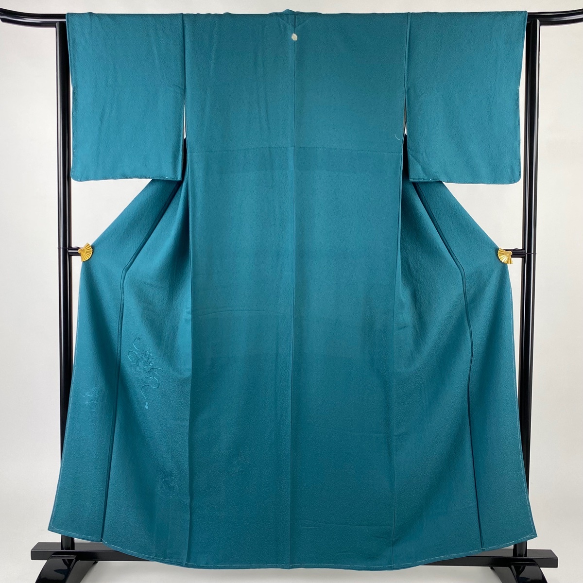 付下げ 美品 秀品 草花 鏡裏文 刺繍 緑 袷 身丈159 裄丈63 S 正絹 【中古】 |