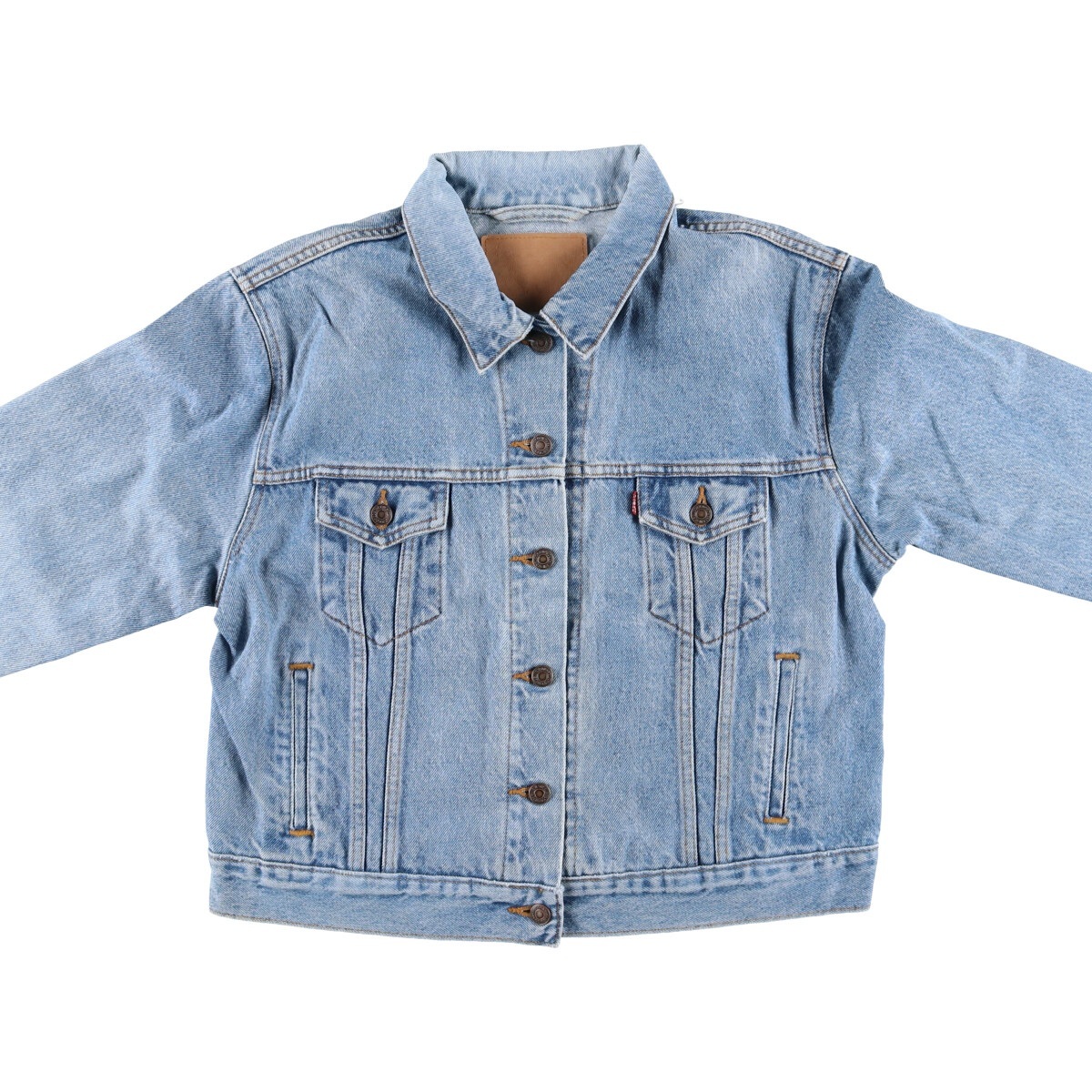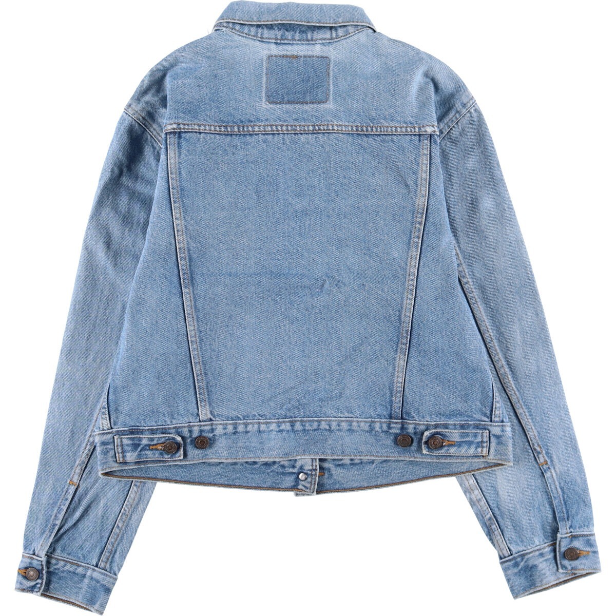 表記サイズ: L 着丈: 53.5cm 身幅: 58cm 肩幅: 47.5cm 袖丈: 60.5cm ![]() | ![]() ランク:B USEDデニムですので使用感、擦れ、色落ちなどございますが、まだまだご愛用していただけます。 古着という事をご理解の上ご注文よろしくお願いします。 |