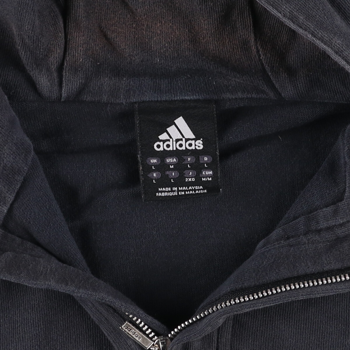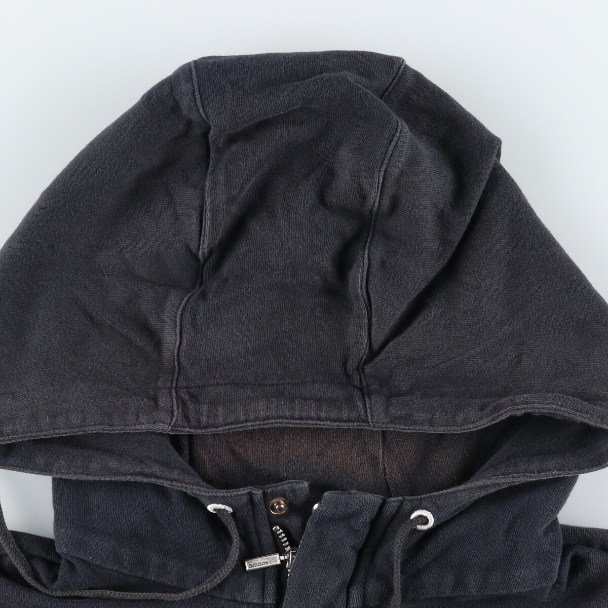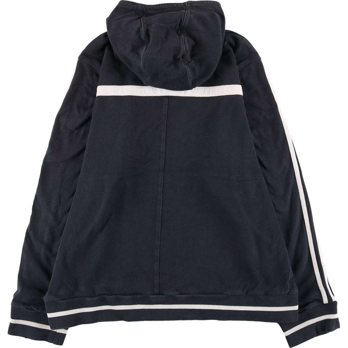 表記サイズ: L 着丈: 66cm 身幅: 59.5cm 肩幅: 44.5cm 袖丈: 63.5cm ![]() | ![]() ランク:C USEDですので使用感などございますが、まだまだご愛用していただけます。 古着という事をご理解の上ご注文よろしくお願いします。 【状態追記】 ●前、フード・両腕3本ライン上・左腕・両袖・胸・裾に汚れ、左腕に穴 ●後、背中ライン・右袖・裾に汚れ、左腕・左袖に擦り切れ、左袖に穴 ●内側、フード後頭部に汚れ、左袖に穴 |