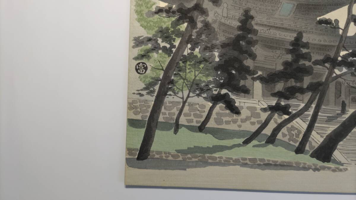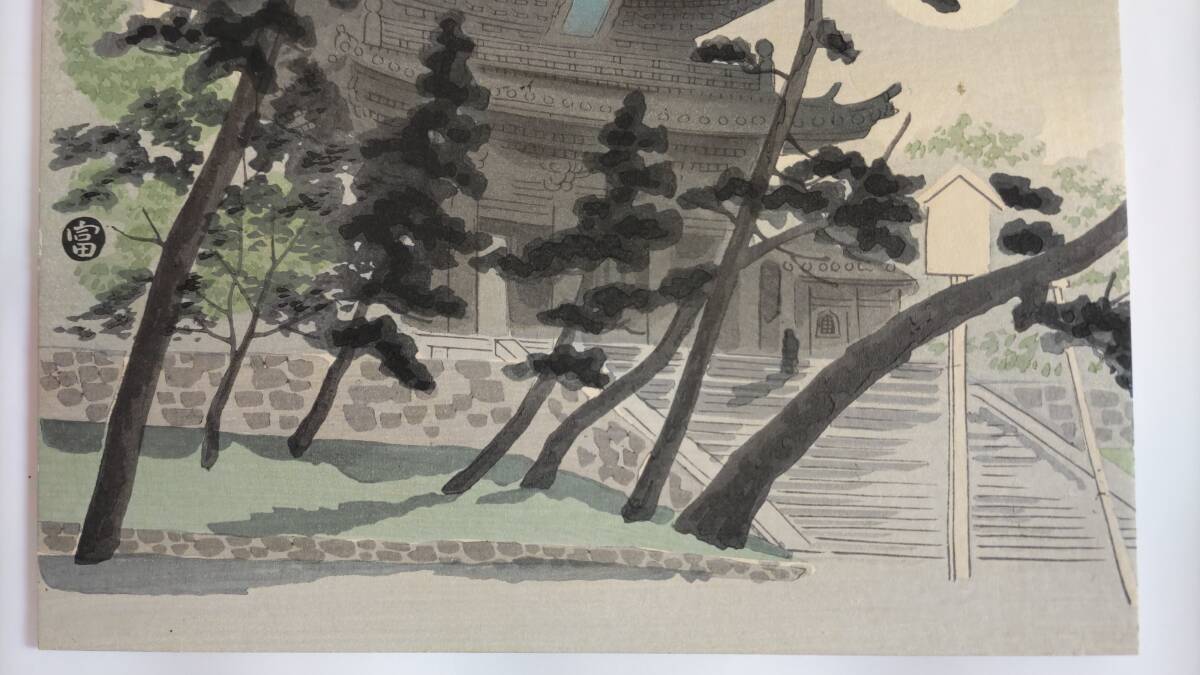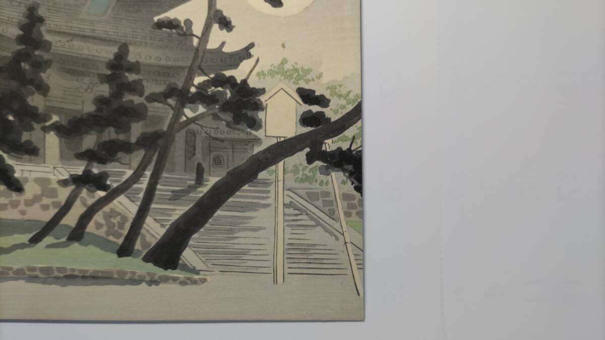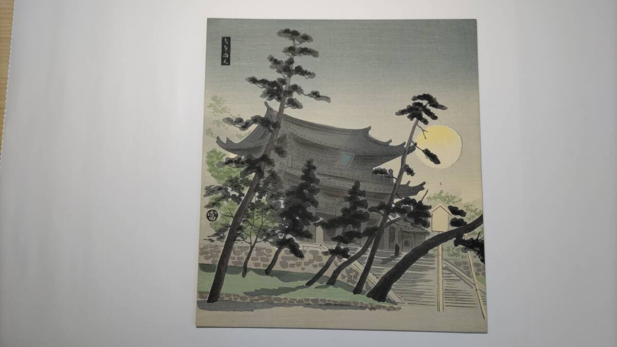 【真作】徳力富吉郎 京洛三十題 「知恩院名月」 1936年(昭和11年)Vintage木版画 京都風情 Kyoto 共シール