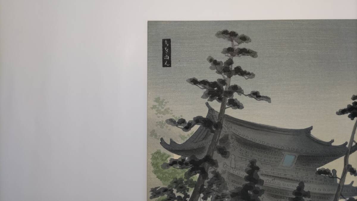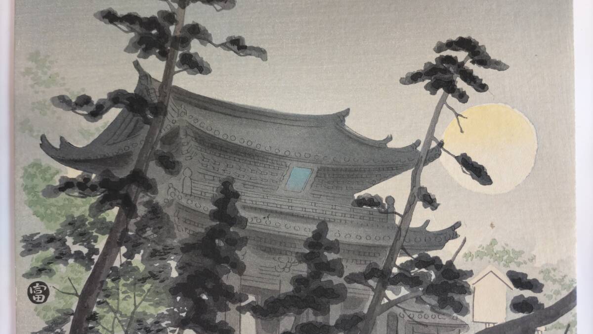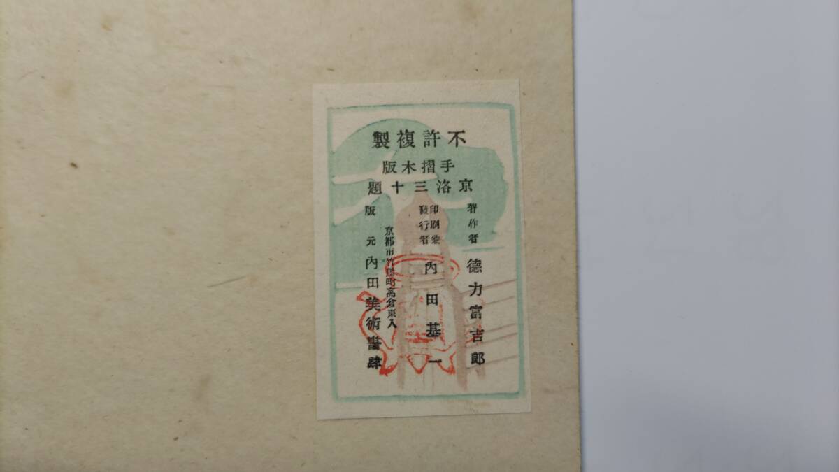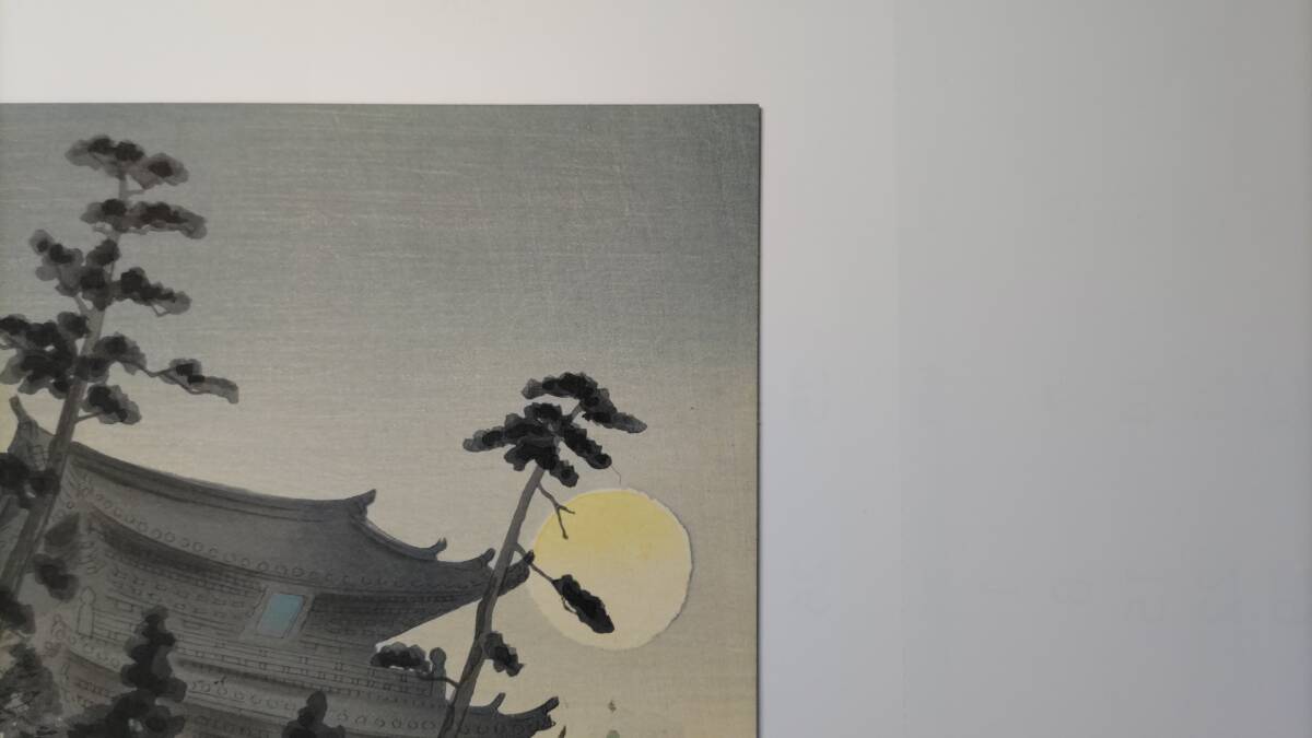 【真作】徳力富吉郎 京洛三十題 「知恩院名月」 1936年(昭和11年)Vintage木版画 京都風情 Kyoto 共シール
