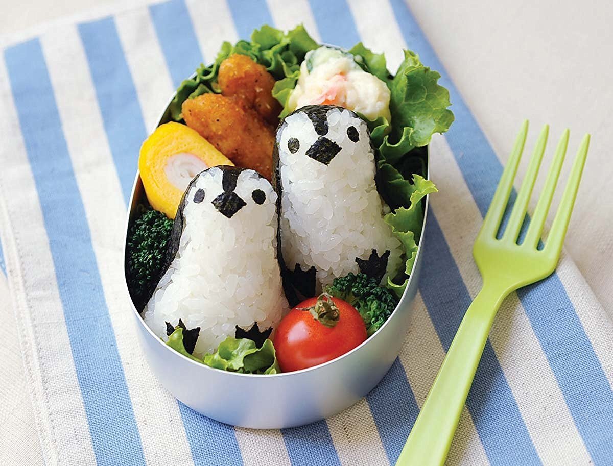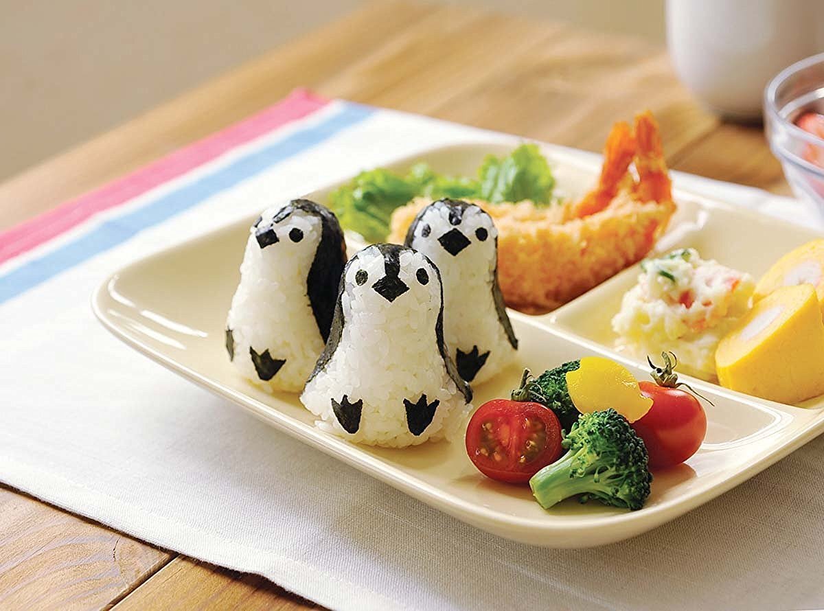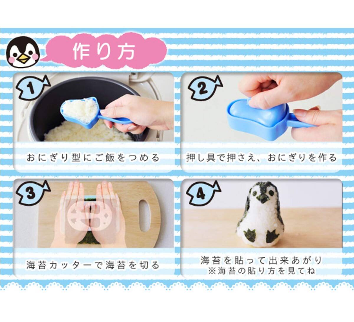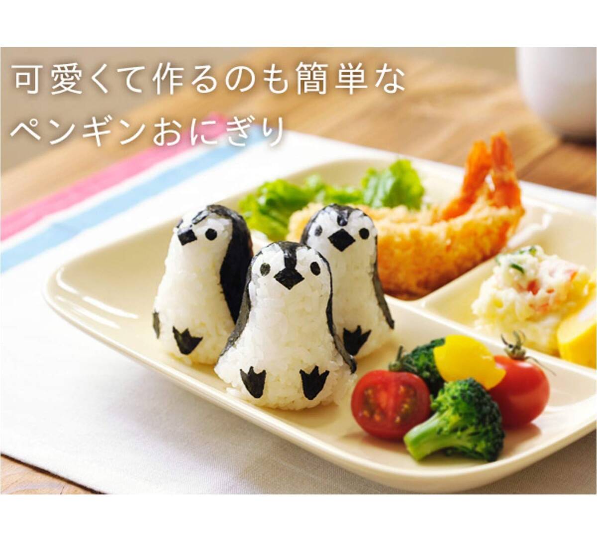 かわいいペンギンのおにぎりが簡単に作れるセット。 食材もごはんと海苔があれば簡単につくれる。 おにぎりは立体でぬいぐるみのよう。