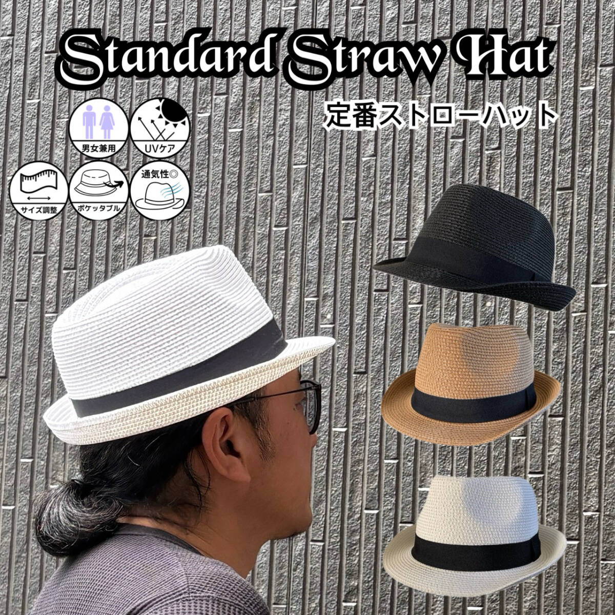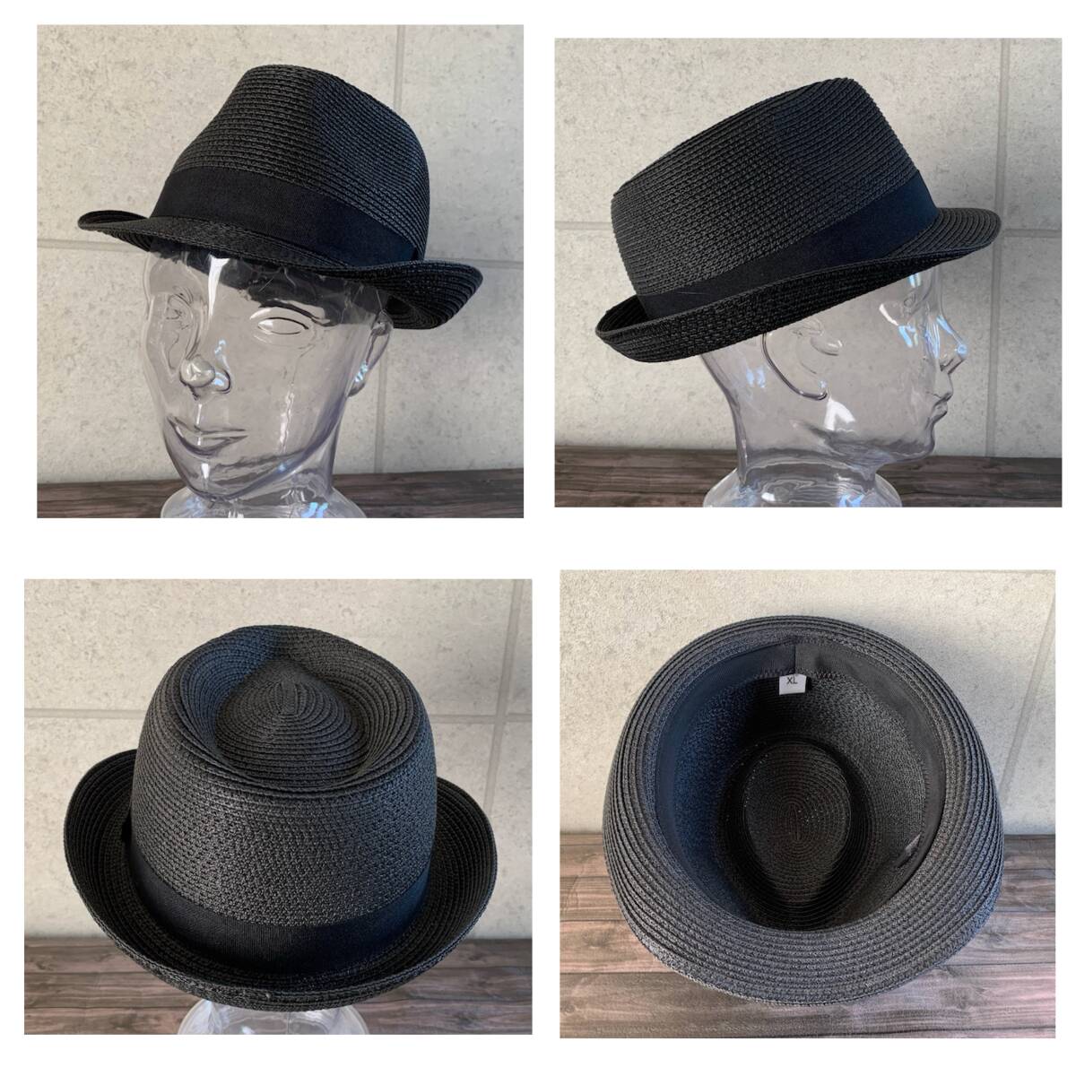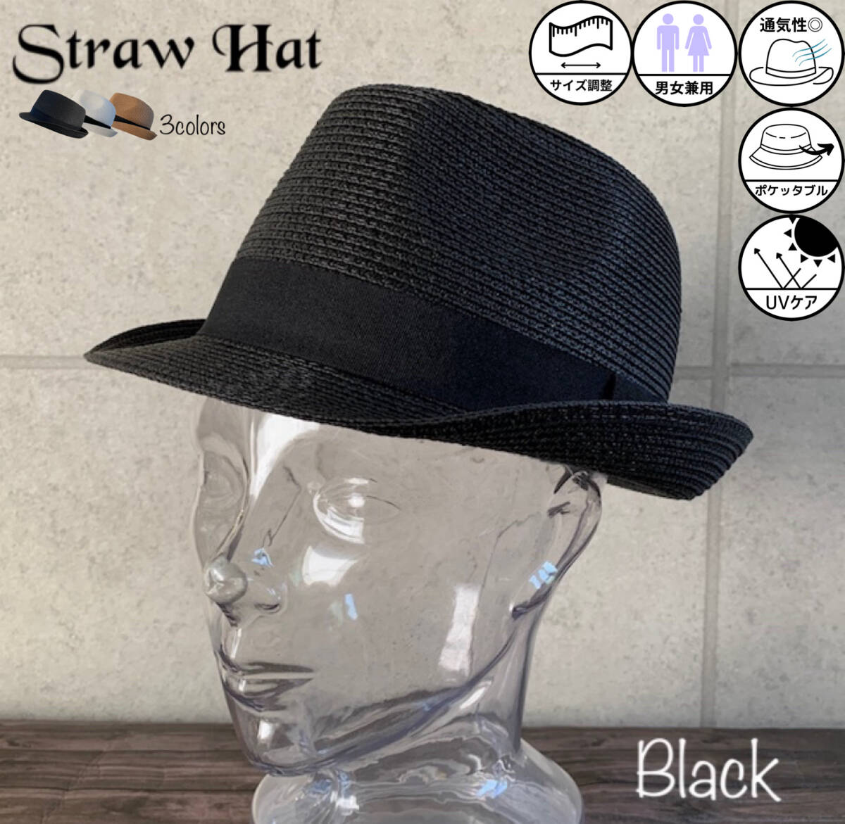 帽子 ストロー 中折れ ハット ブレード Lサイズ 折り畳み ストローハット MサイズからLサイズ 定番 春 夏 男女兼用 ブラック 黒