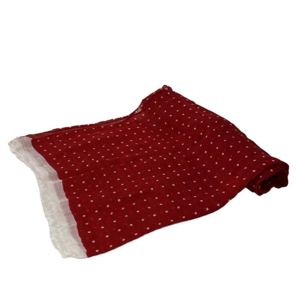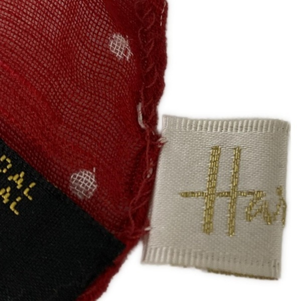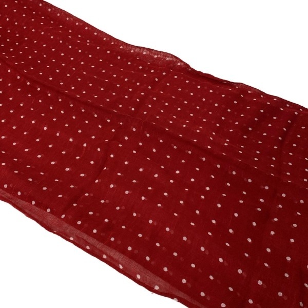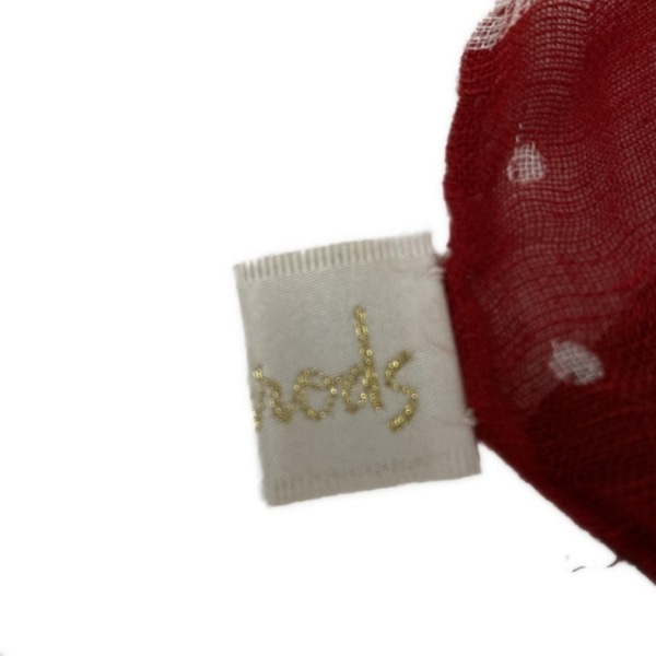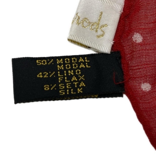 ハロッズ HARRODS ストール(ショール) - リネン、シルク レッド×白 ドット柄/フリンジ 美品 マフラー