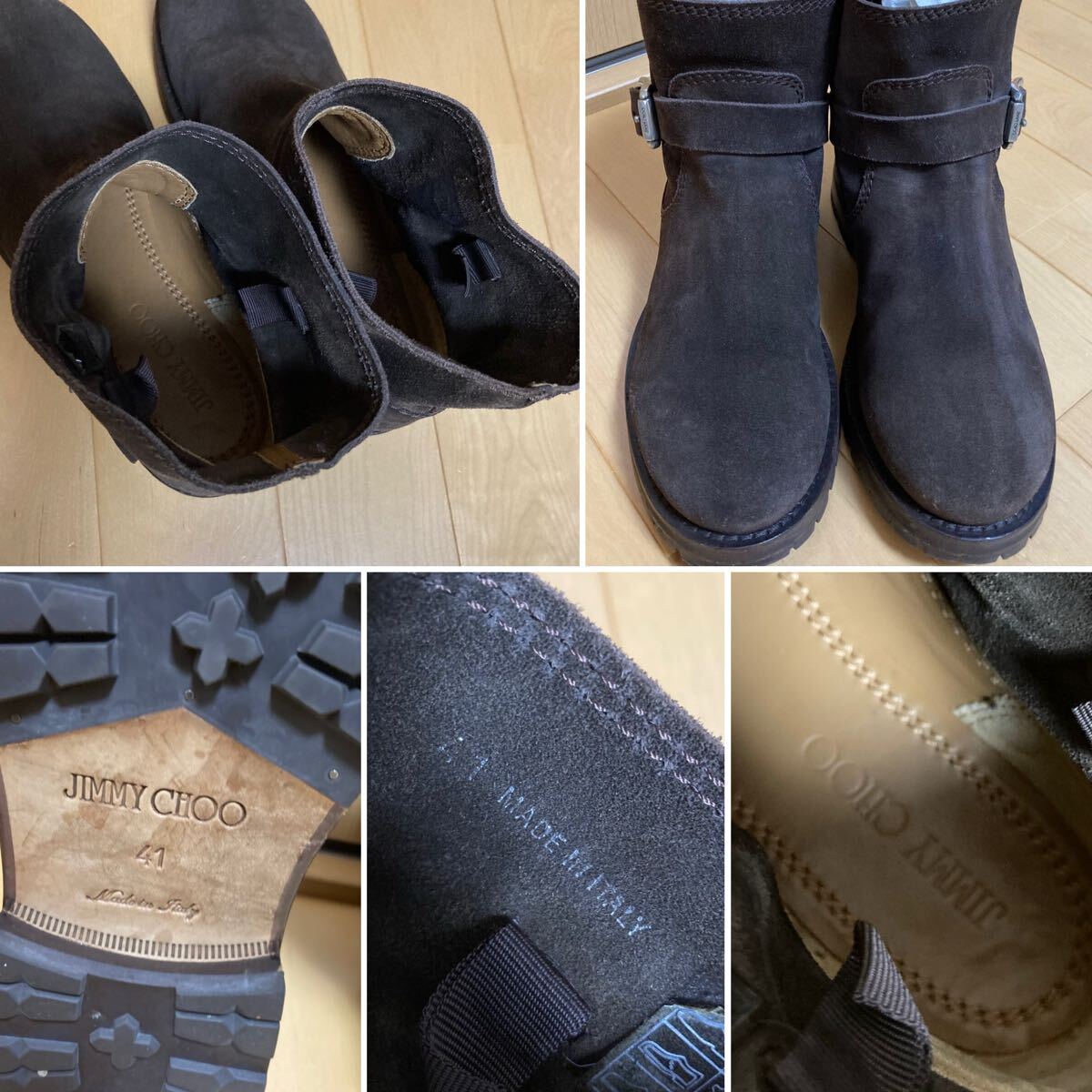 [JIMMY CHOO] スウェードレザー ショートエンジニアブーツ 41 本革 ブラウン メンズ イタリア製 ジミーチュウ