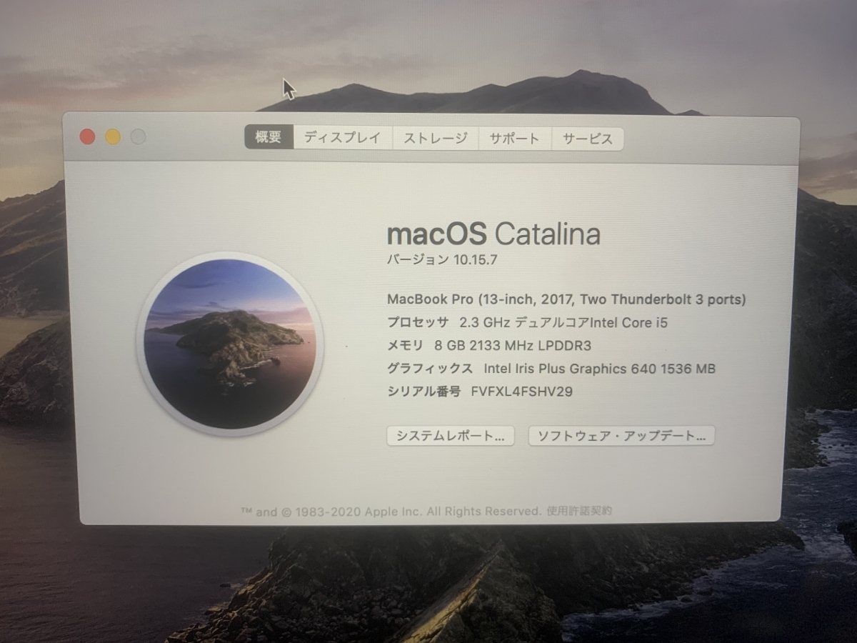 CPU : Core i5-7360U 2.30-3.60 GHz (2コア/4スレッド)