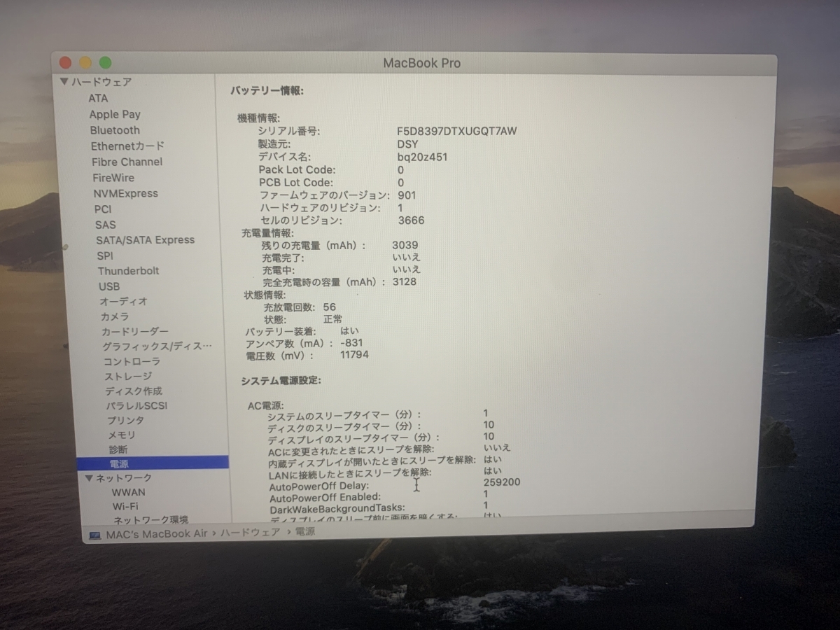 製品名(型番) : MacBook Pro Retina [A1708 Thunderbolt 3ポートx 2]
