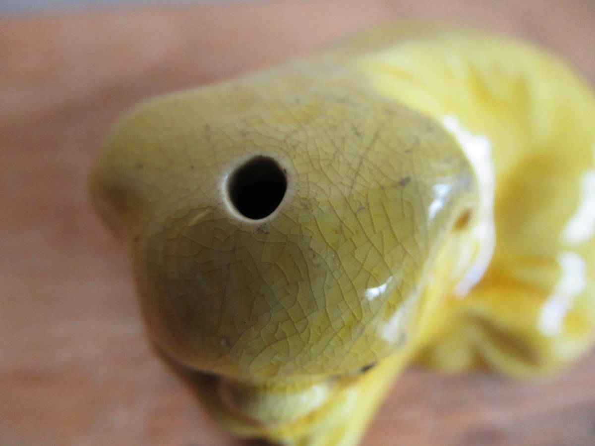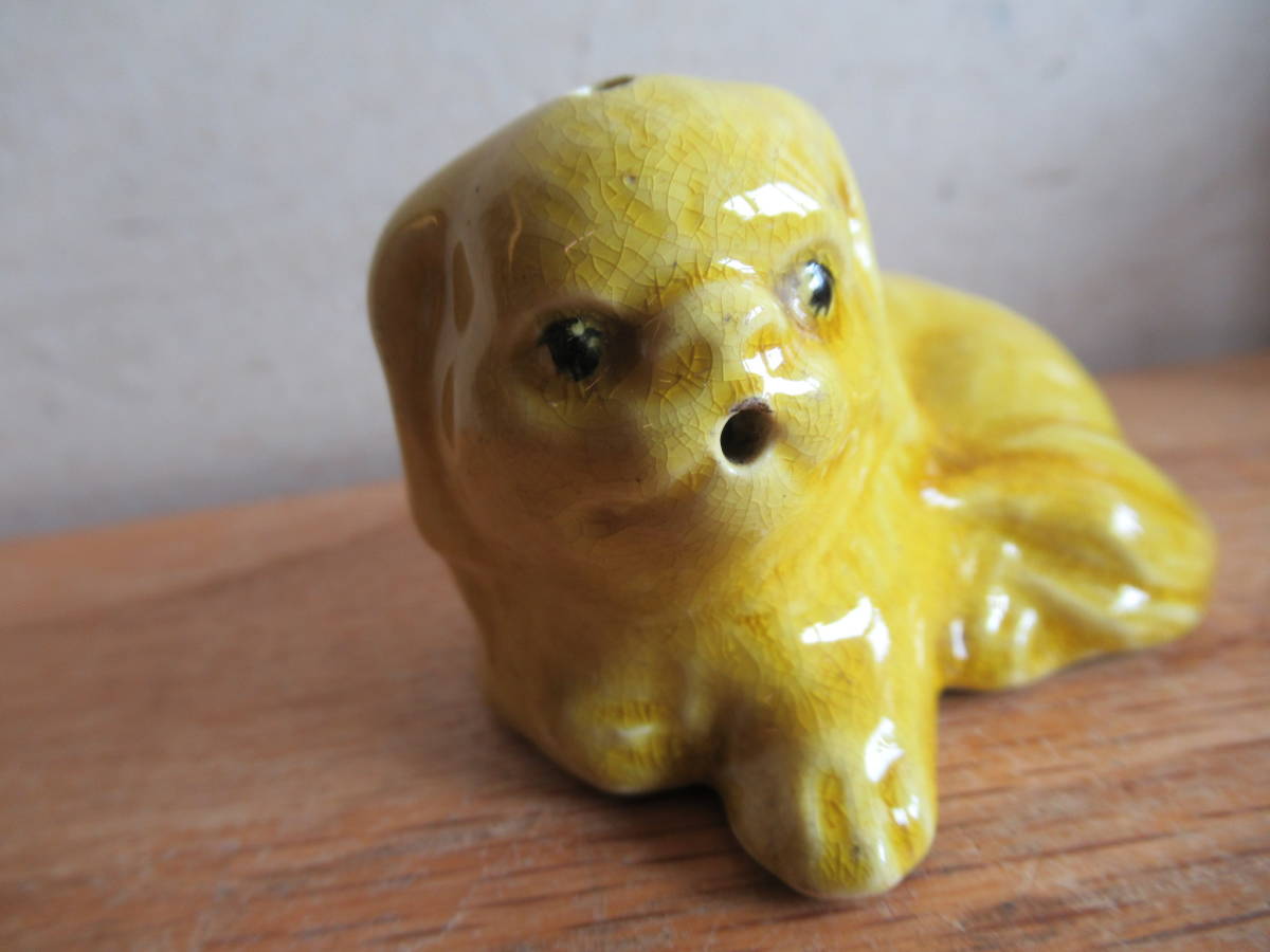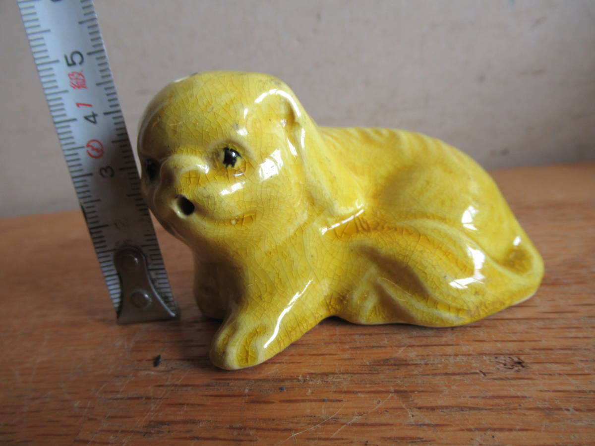 洋犬モチーフデザイン 陶器製 書道の水滴 おちょぼ口がかわいい 黄色い耳長わんちゃん アンティーク品 骨董