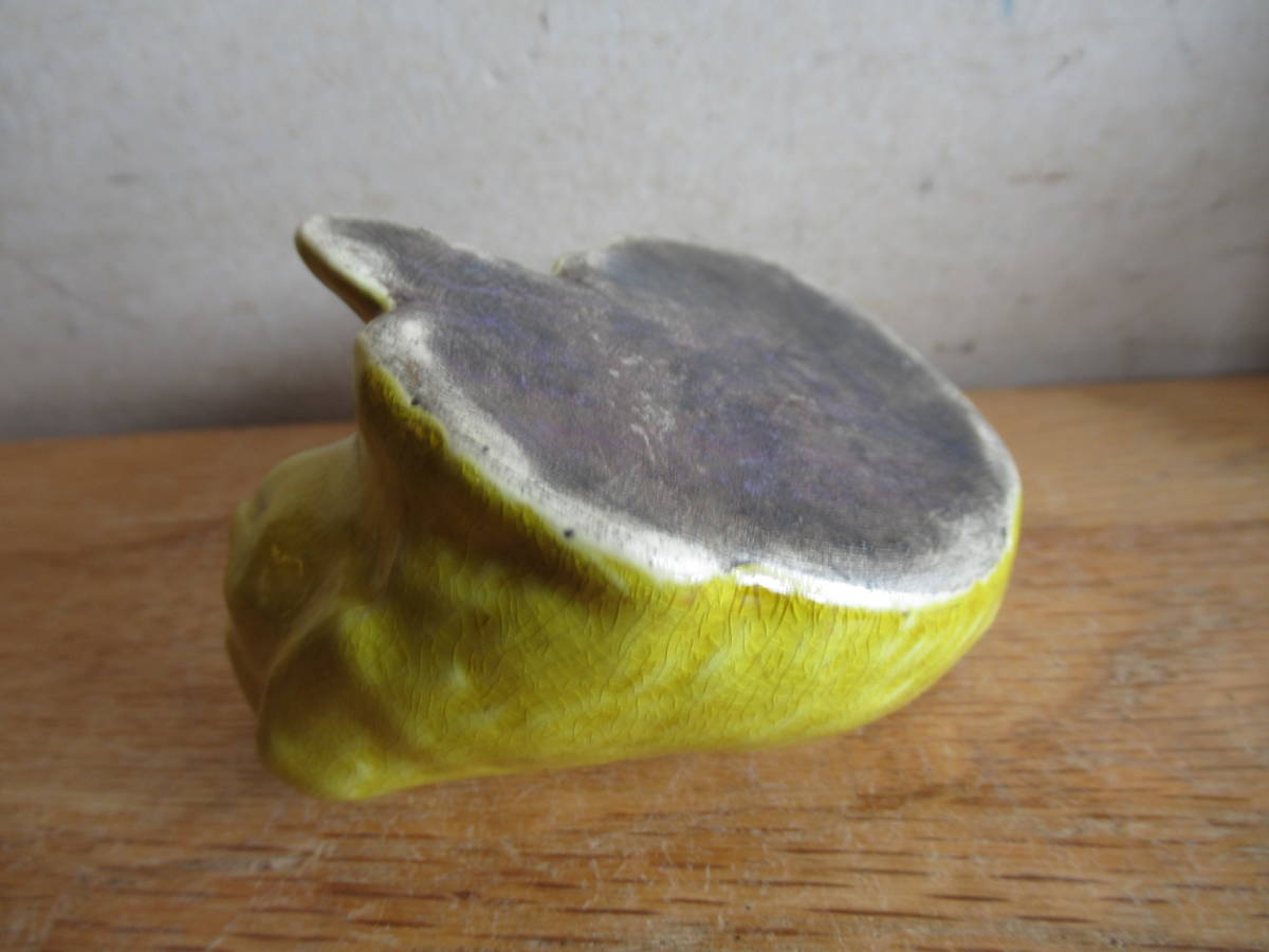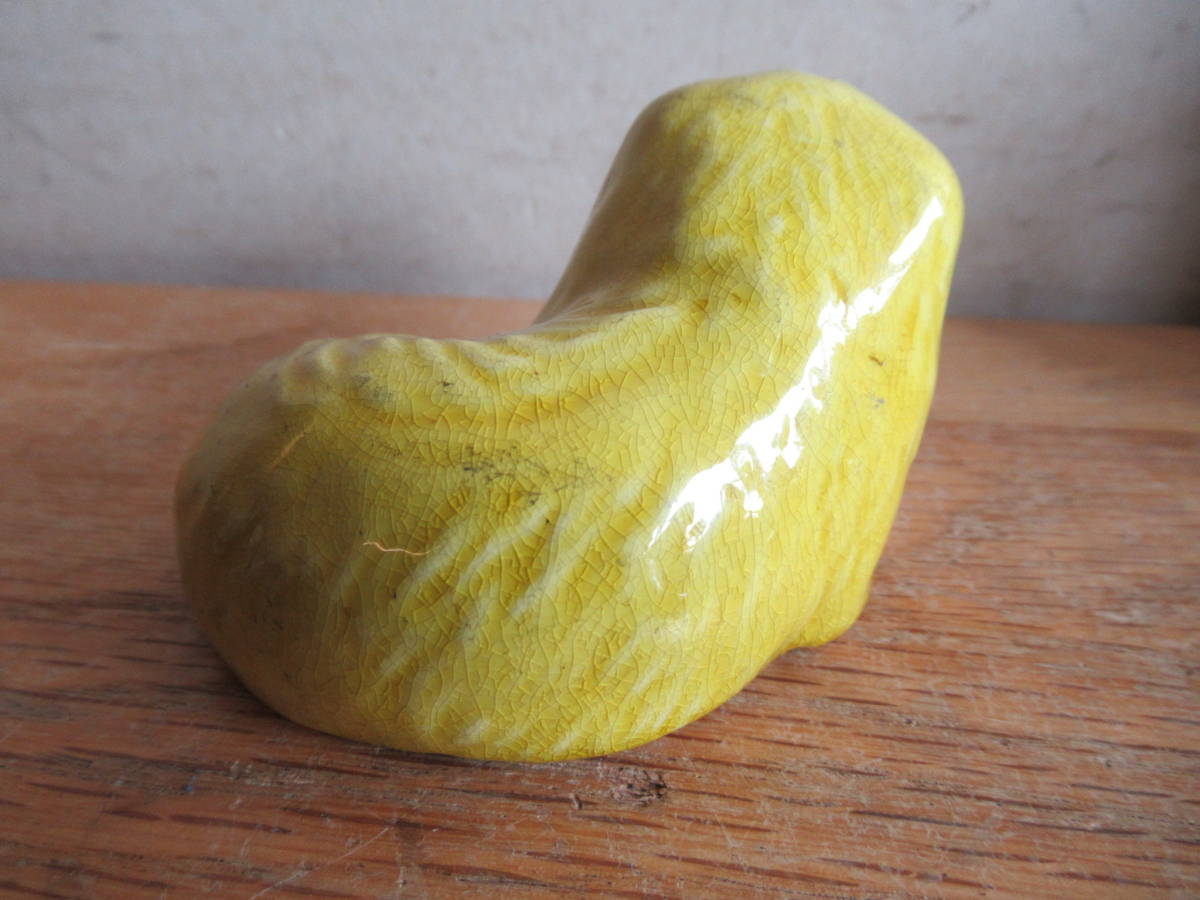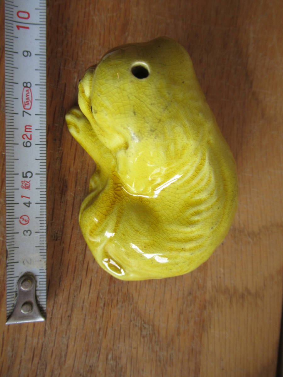 洋犬モチーフデザイン 陶器製 書道の水滴 おちょぼ口がかわいい 黄色い耳長わんちゃん アンティーク品 骨董
