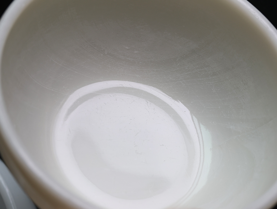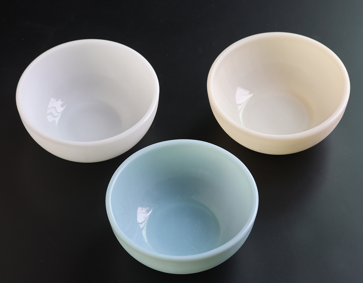 | 【商品の状態】 ★★☆☆☆☆ 製造年:1950年代 直径 12.7cm 高さ 5.8cm 全体に擦れありのファイヤーキングのターコイズブルー、ライトアイボリー、ホワイトのチリボウル3個セットです。 3個ともヒビ、カケなくグッドコンディションです。ターコイズブルーとライトアイボリーボウルは内側外側全体にディッシュウォッシャーにより擦れがありツヤがなくなっています。ホワイトボウルは内側は綺麗ですが、外側ボディーにディッシュウォッシャーによる擦れがあります。それ以外チップ等ありませんので、何かの用途で利用できると思います。 3個とも底にはファイヤーキングの刻印があります。 80サイズでの発送となります。送料は料金表をご確認くださいませ。K936-5 【送料】