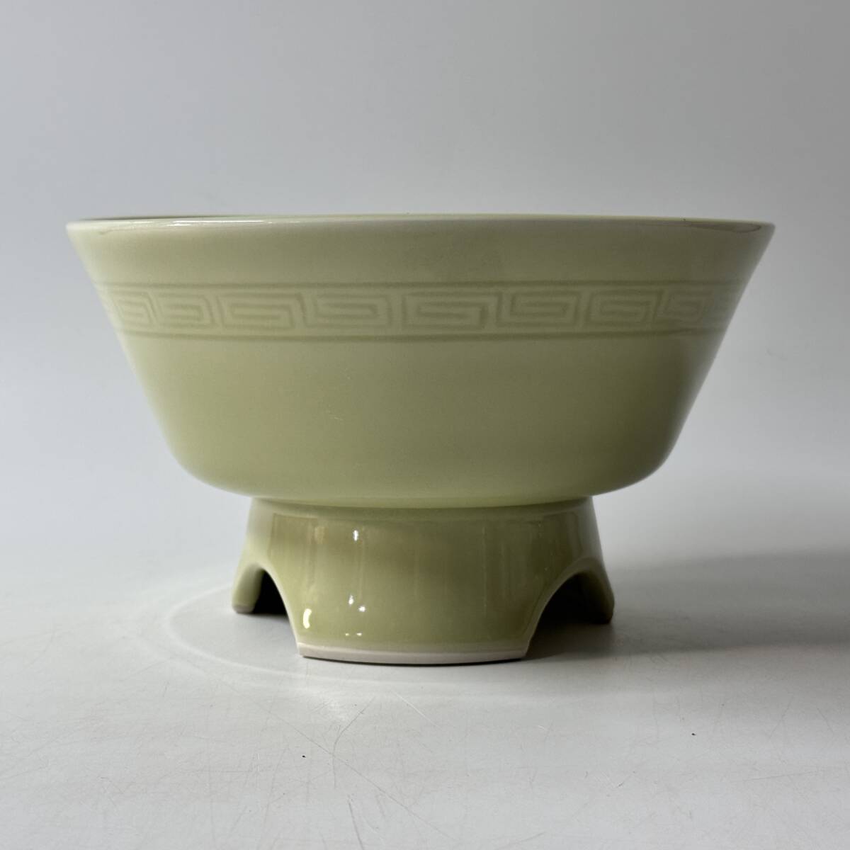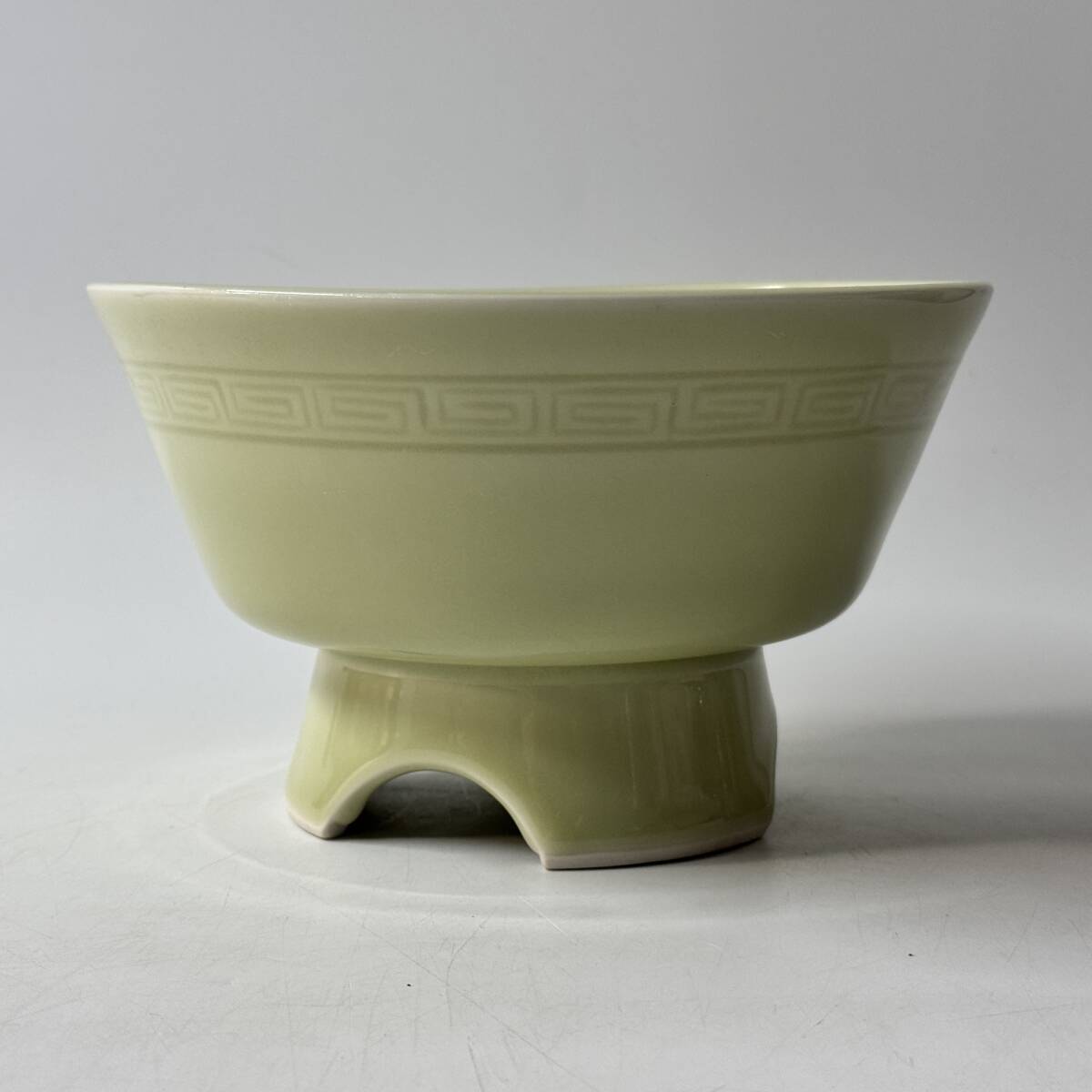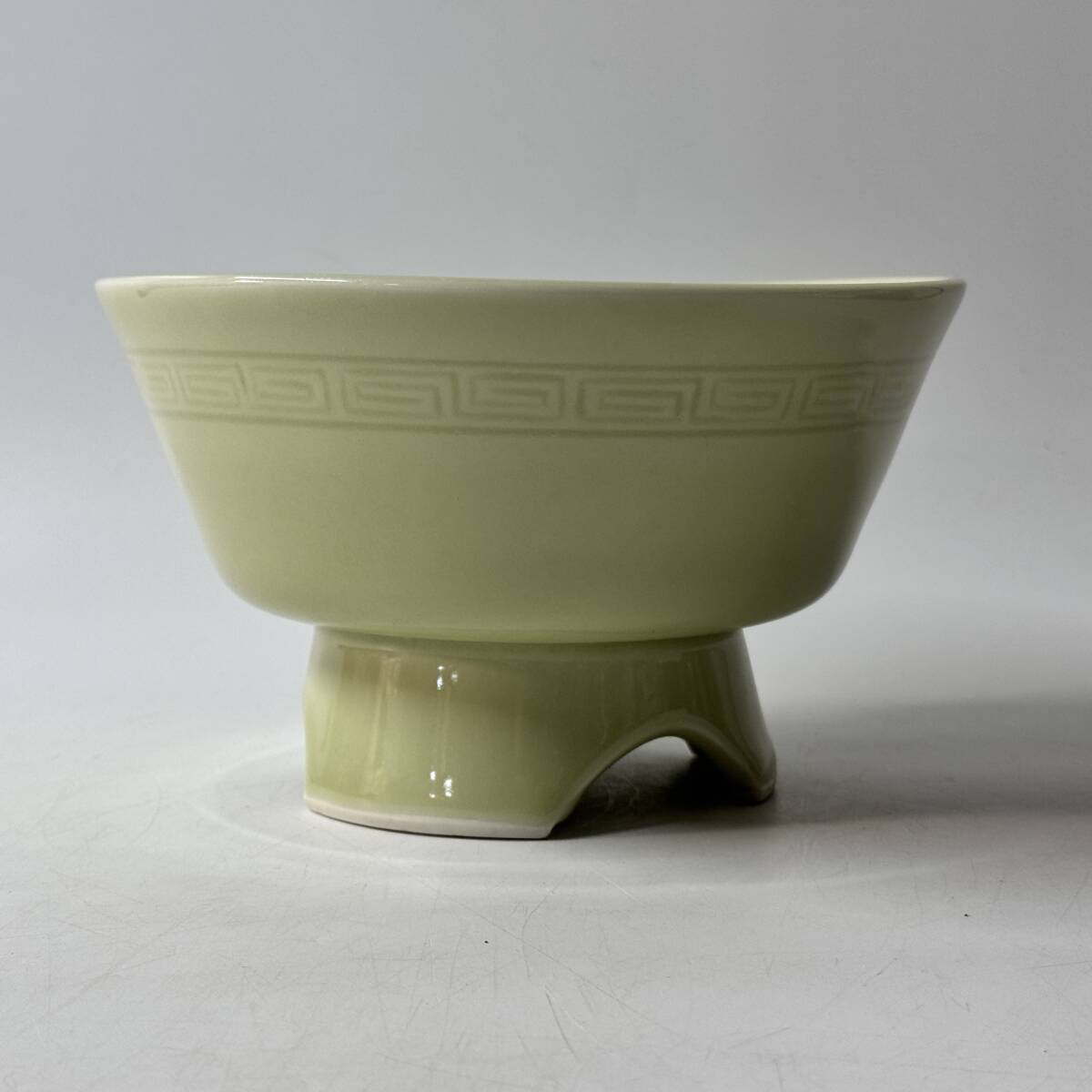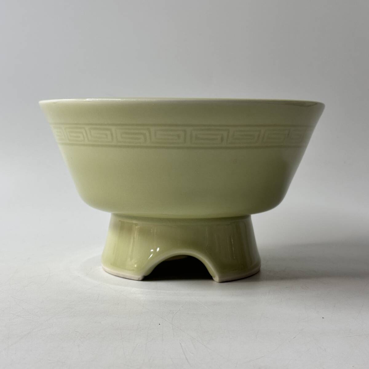 足付き水盤 在銘 竹生銘 産地窯元不明 作者不詳 雷文 花器 花瓶 花入 花生 華道具 茶道具 中国古玩 経年保管品 現状品の出品です。
