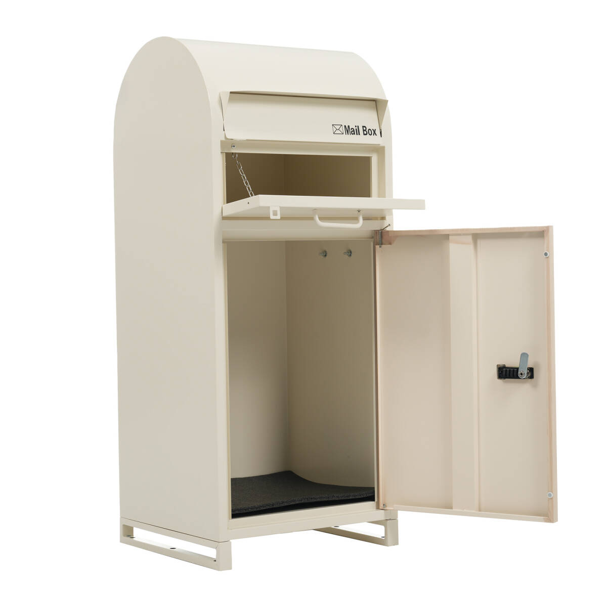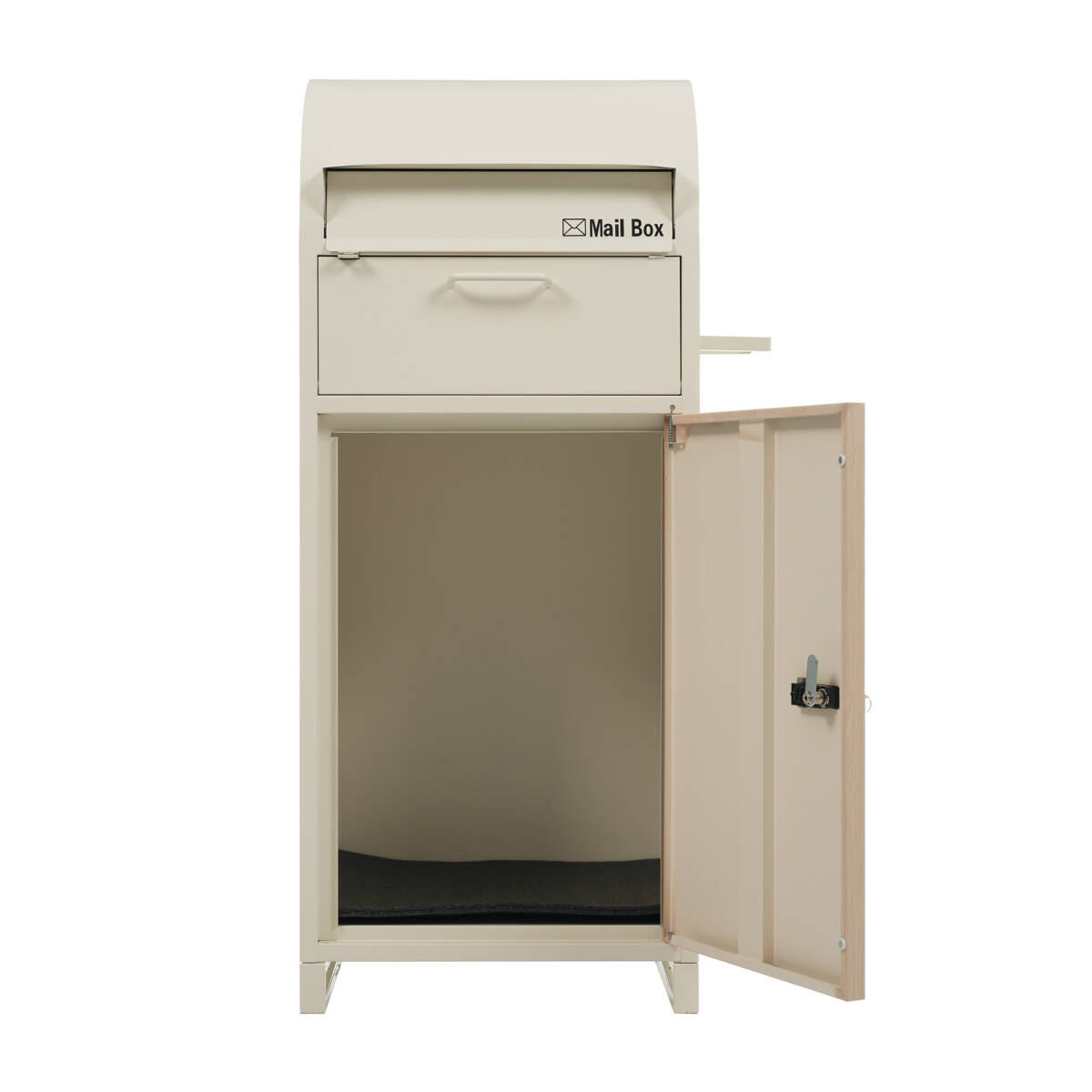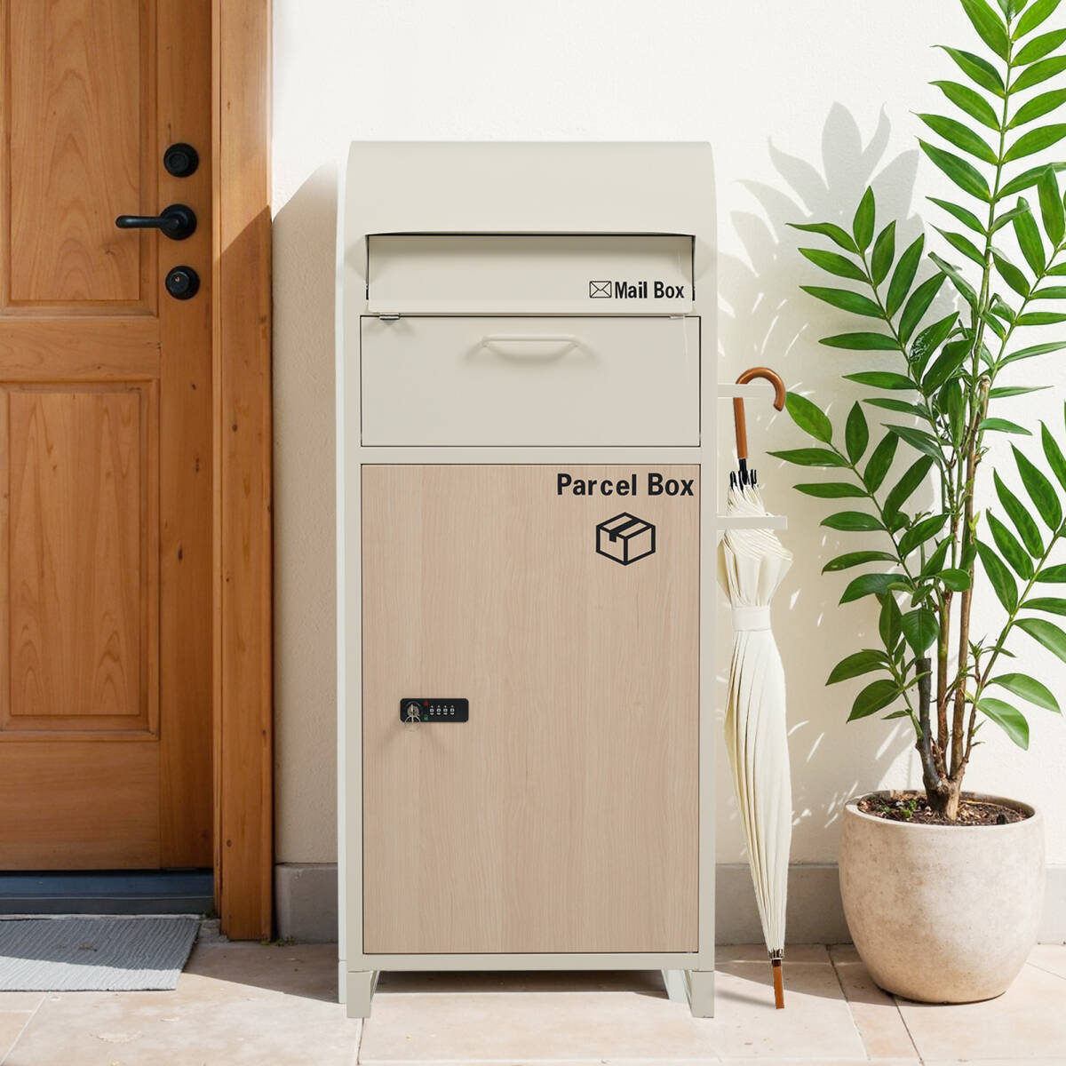 ポスト 置き型 ほぼ完成品 傘立て付き ポスト付き 宅配ボックス付き スタンドポスト おしゃれ 一戸建て用 大型 【ベージュ+木目】