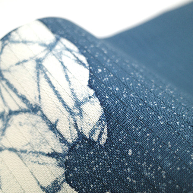 青紺色のような深みのあるお色に雪輪文様が凛と映える──