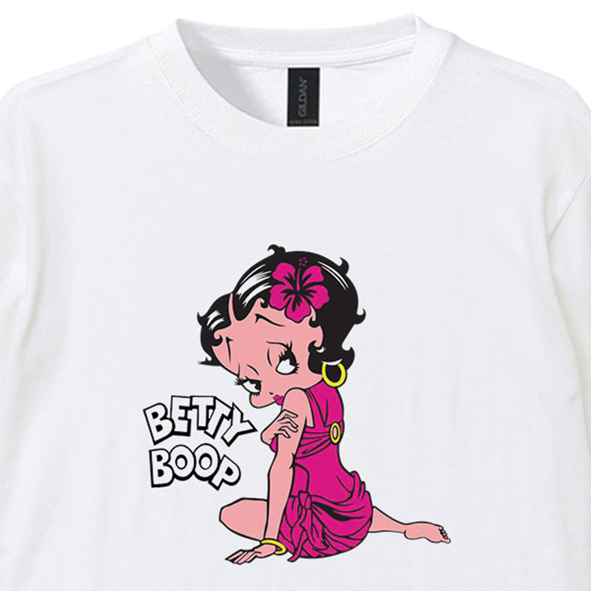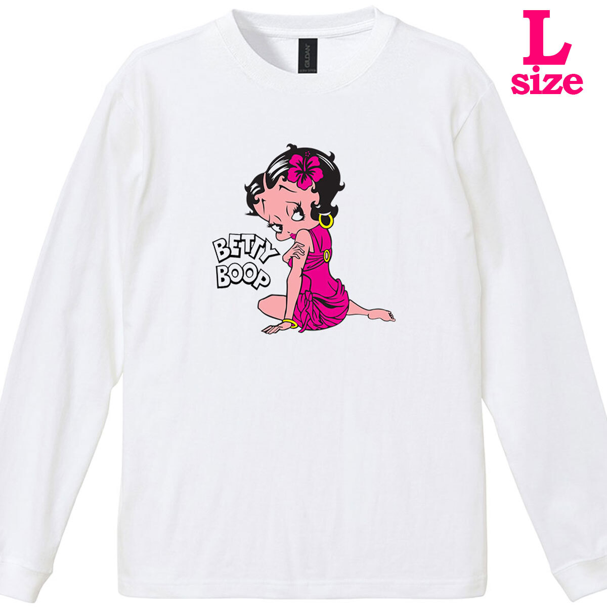 BETTY BOOP ベティ イラスト プリント リブ付き 長袖 Tシャツ ロンT 映画 ムービーTシャツ カジュアル 6.0oz コットン100% ユニセックス L