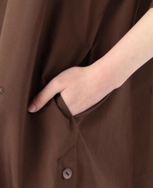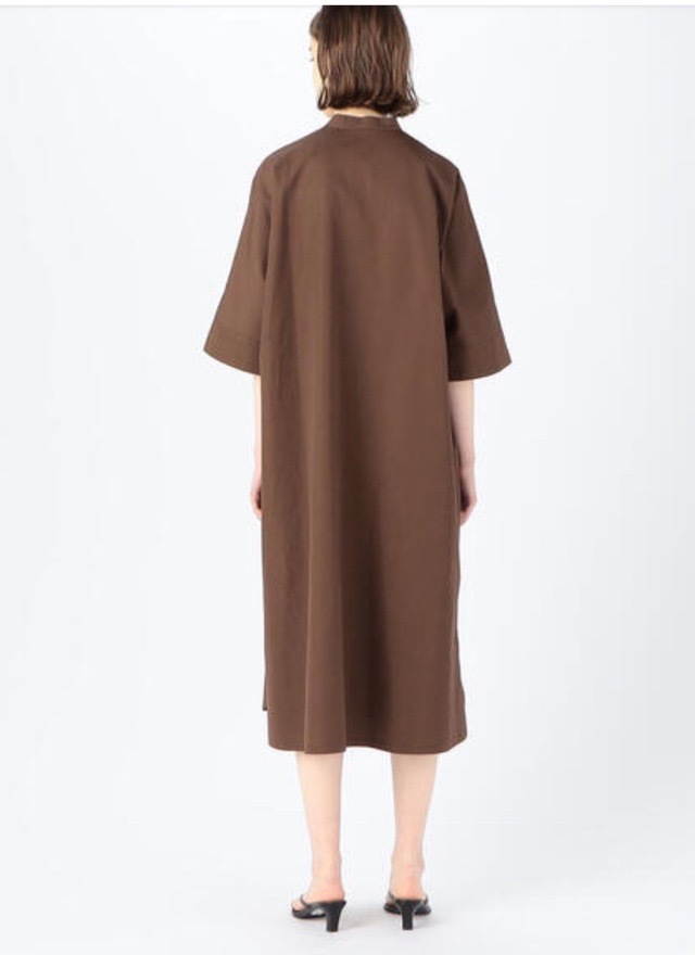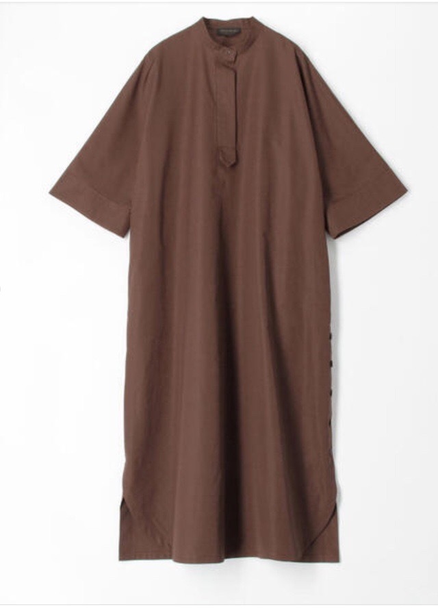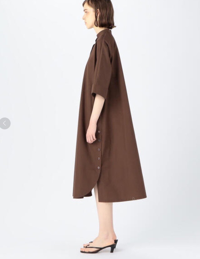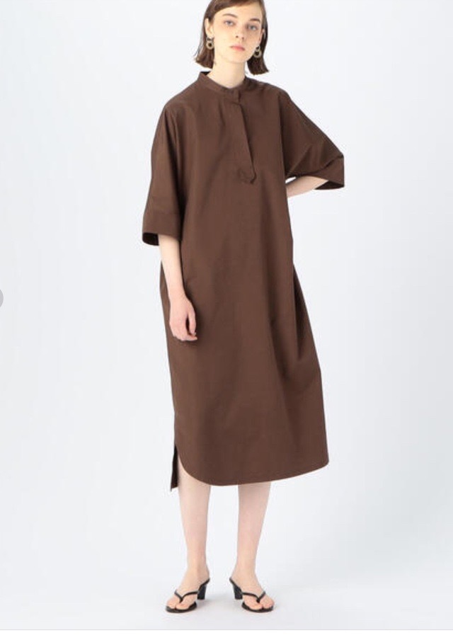 定価3.3万 TOMORROWLAND コットントロピカルバンドカラーワンピース◆トゥモローランドハリ感シャツ IENAplageアローズジャーナル ブラウン