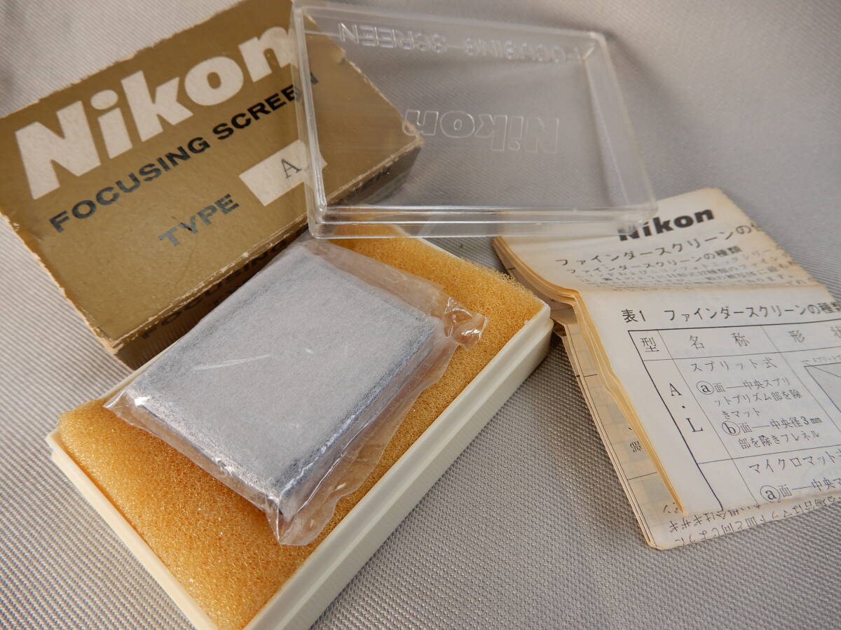 貴重品・Nikon/ニコン・F・F2用「Focusing Screen/フォーカシングスクリーン 白文字type A型」説明書・プラケース・元箱入り