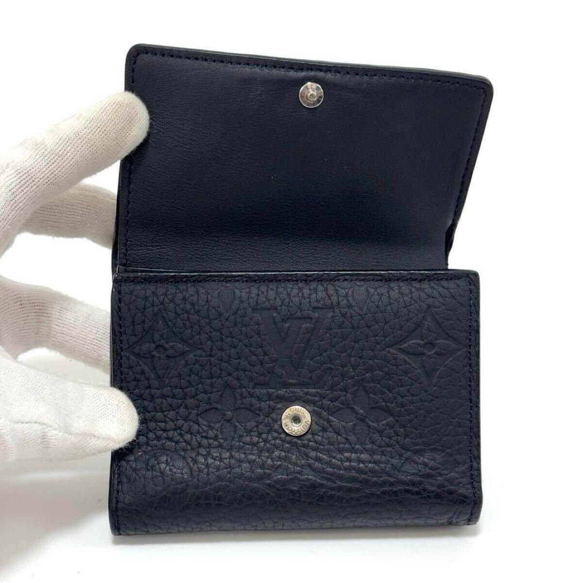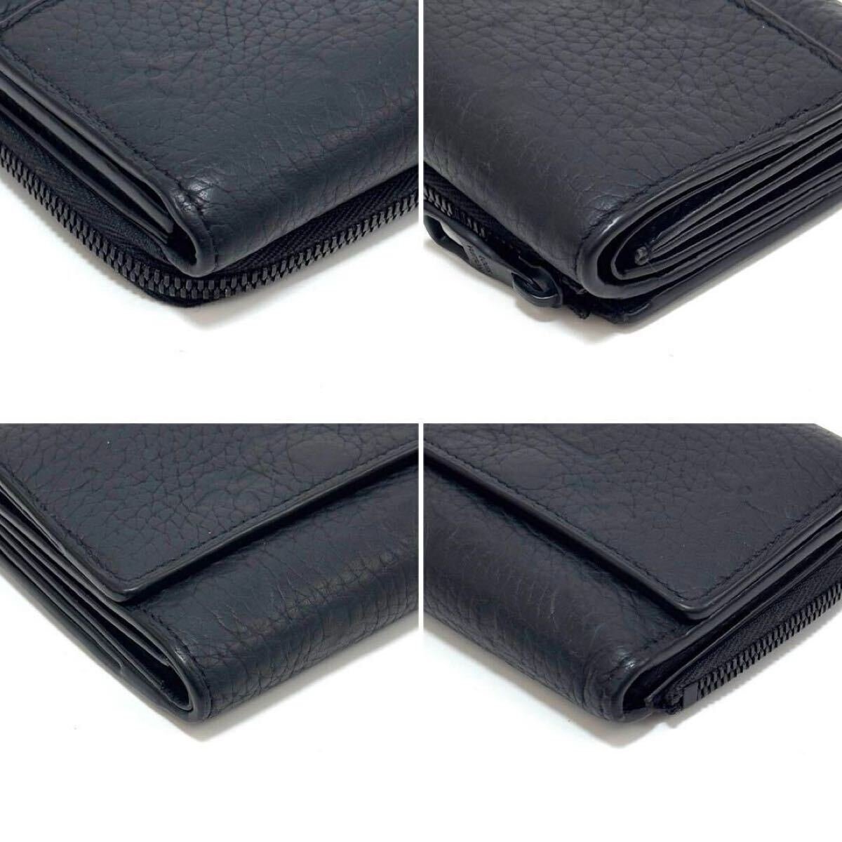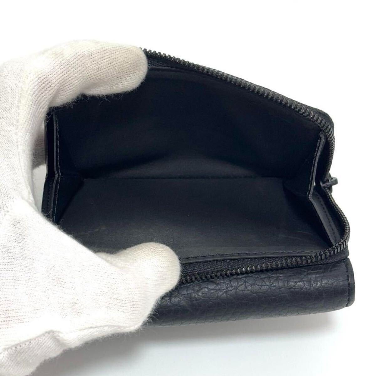 肌触りの良い高級感あるブラックのトリヨンレザーが使われた三つ折り財布です♪ コンパクトでありながら小銭やお札、カード、レシートなども収納することができます! |