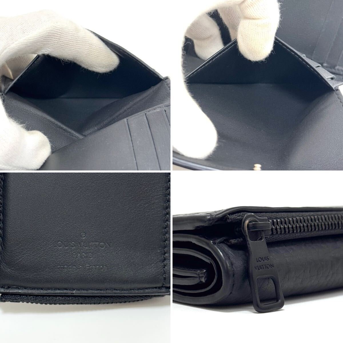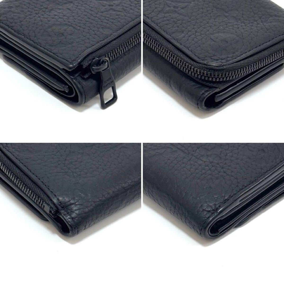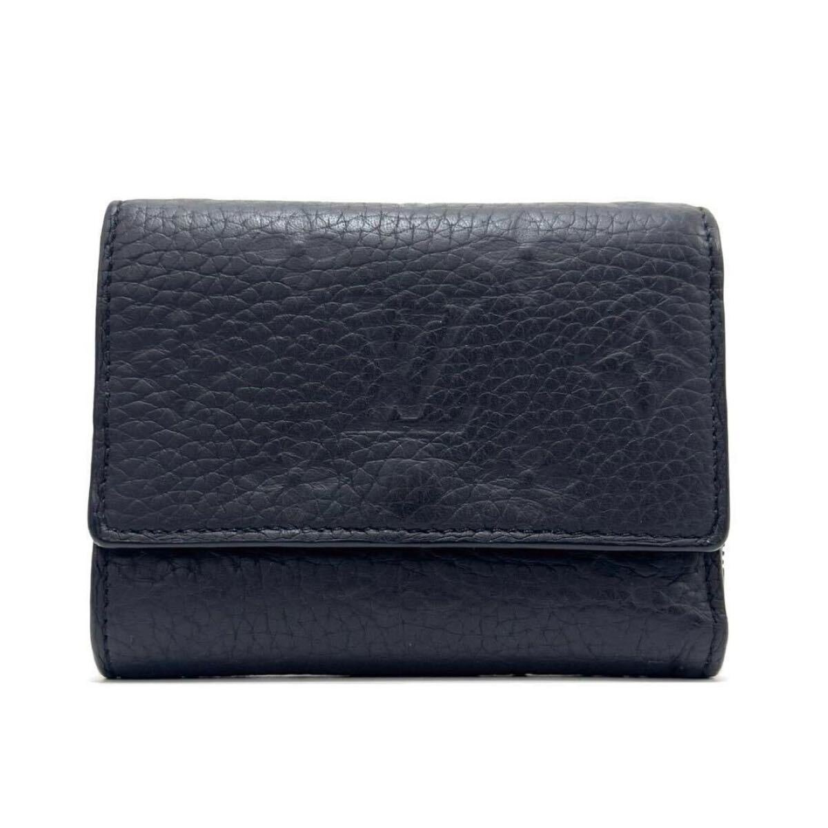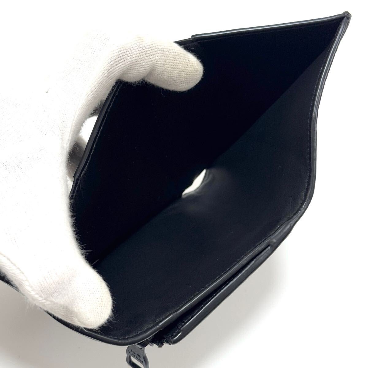 肌触りの良い高級感あるブラックのトリヨンレザーが使われた三つ折り財布です♪ コンパクトでありながら小銭やお札、カード、レシートなども収納することができます! |