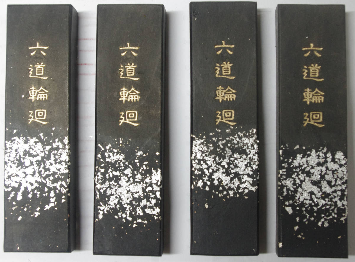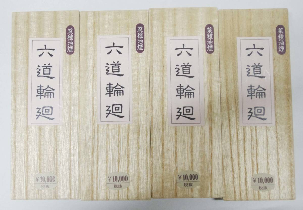 書道用 固形墨 「六道輪廻」5丁型 4本セット菜種油煙製の出品です。 菜種油煙製なので 濃墨では艶のある純黒でやや黒紫系の墨色です。 書画共に使用出来る貴重な逸品です。 サイズ約 縦127mm横35mm厚さ14mm 重さ83g 全て新品未使用 桐箱入りです。 土日は休みの為取引連絡、発送が出来ません。 平日のみの対応になります。