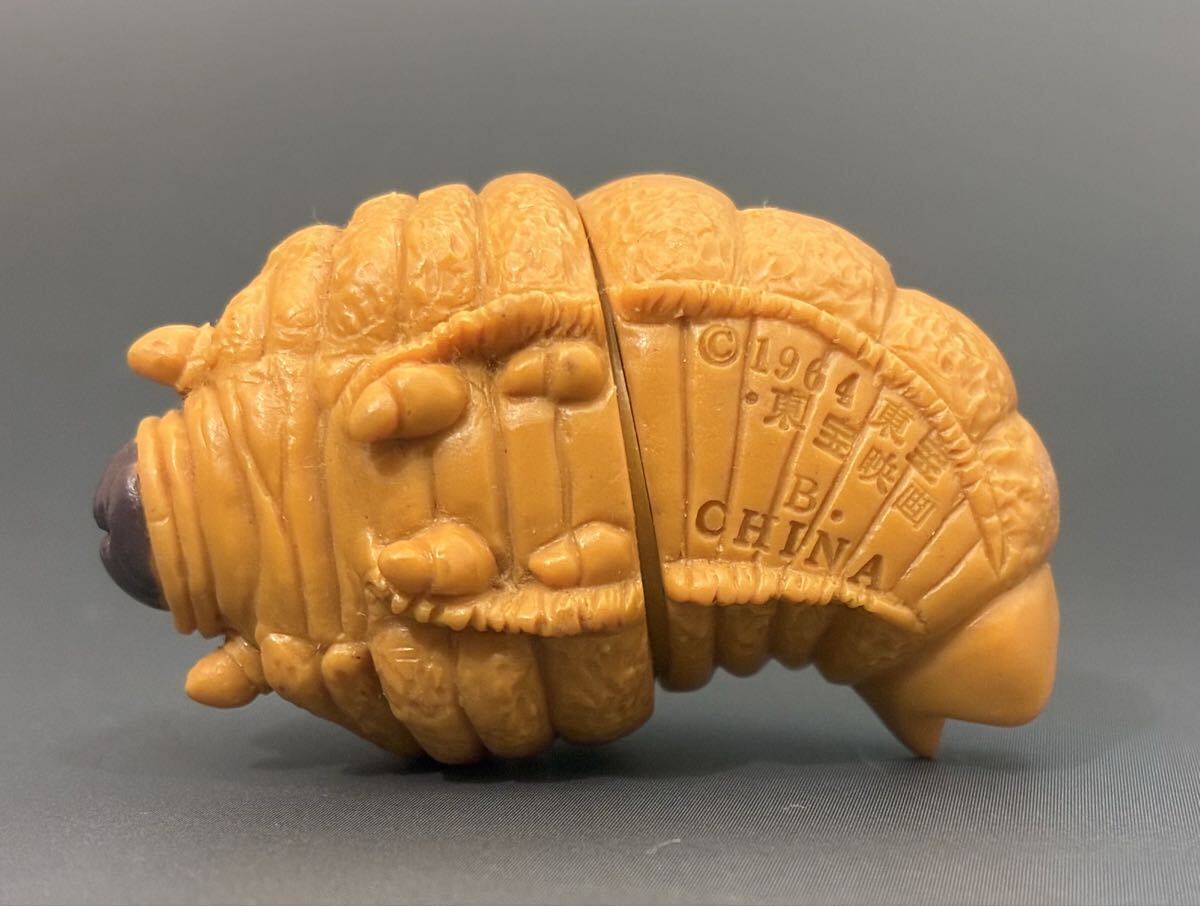 ミニソフビのモスラ(幼虫) 開封中古品、画像の物が現物です。スタンダードな指人形と同じぐらいのサイズです。