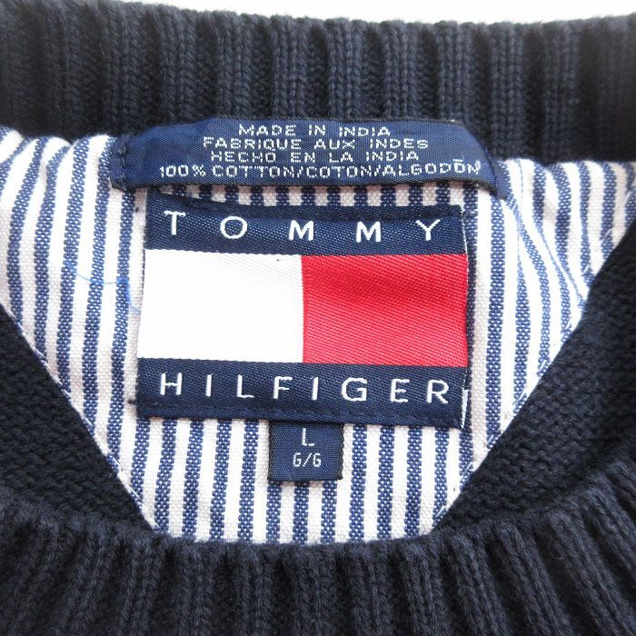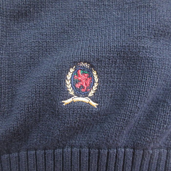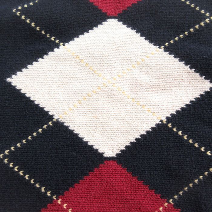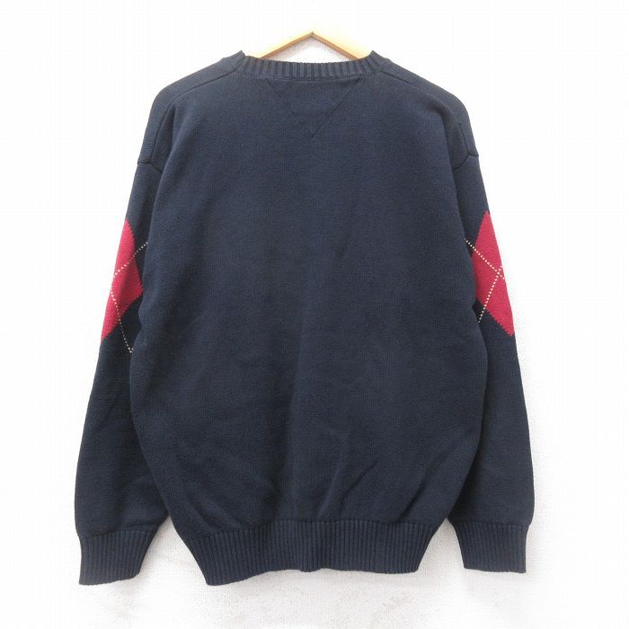 【商品名】 L★古着 トミーヒルフィガー 長袖 ブランド セーター メンズ 90年代 90s アーガイル柄 ワンポイントロゴ コットン クルーネック 紺
