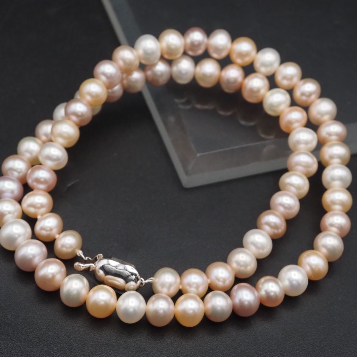 F035 淡水真珠 パール SILVER刻印 ネックレス ピンク系カラー デザイン シルバー 6月誕生石
