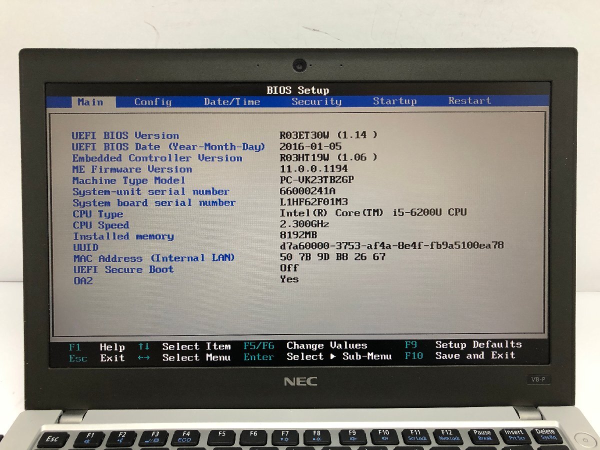 ジャンク/ NEC PC-VK23TBZGP Intel Core i5-6200U メモリ8.19GB ストレージ無し 【K20441】