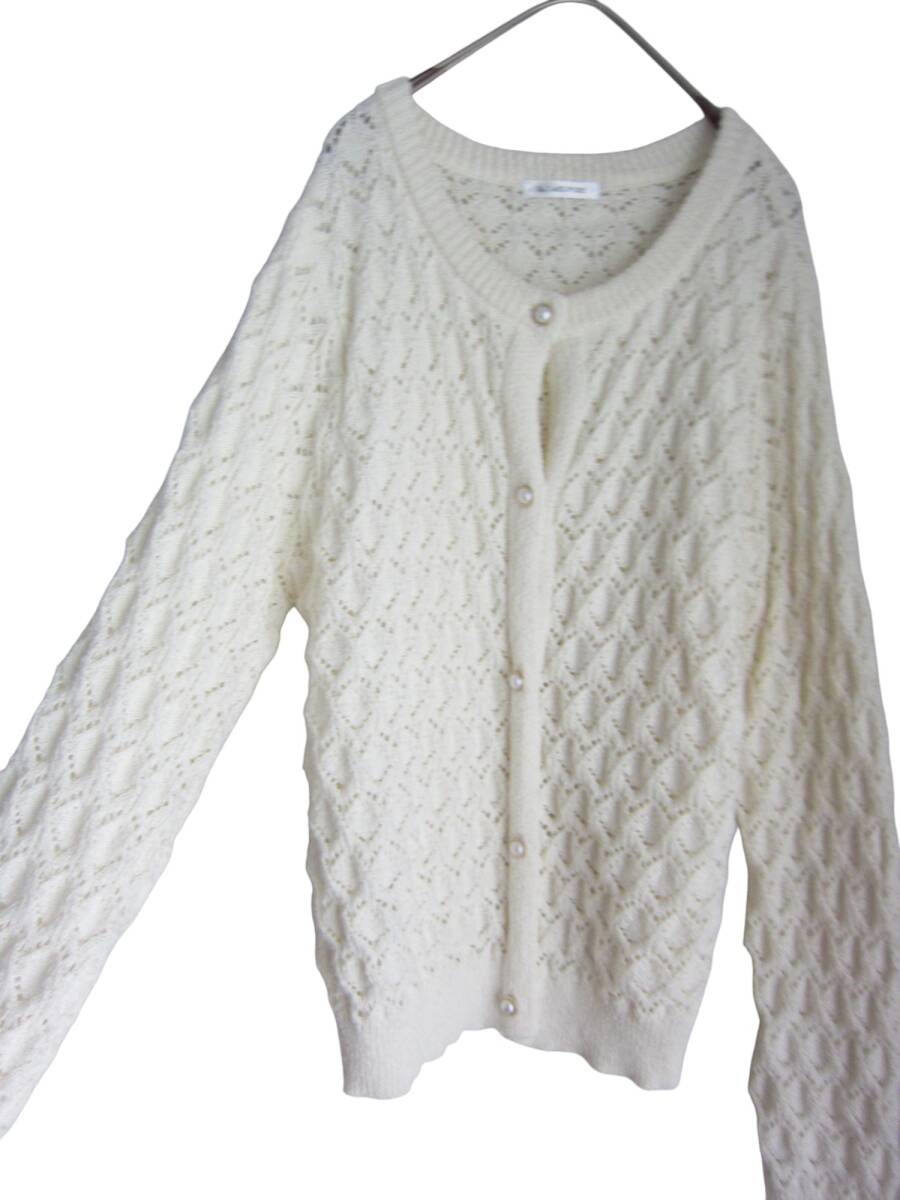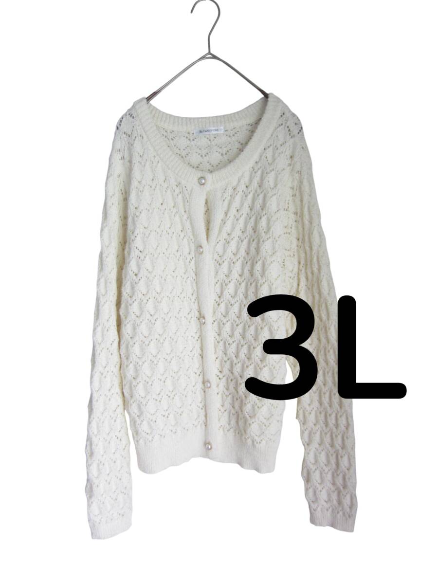 送料無料 R53 【3L】 ホワイト アミアミ ニットカーディガン 長袖 大きいサイズ ゆうパケットプラス
