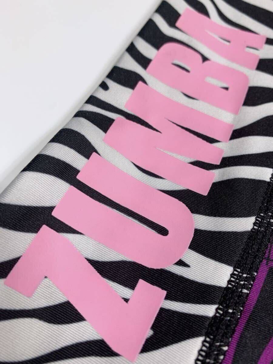 バックウエスト部分オシャレなゼブラ柄にピンクの「ZUMBA」(画像⑧)インナーパンツも同じゼブラ柄で最高にカッコいいです(画像⑦)