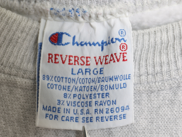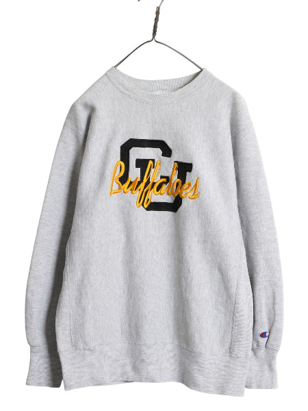 | 商品名 | 90s USA製 チャンピオン リバースウィーブ カレッジ 刺繍 スウェット メンズ L / オールド トレーナー 裏起毛 ヘビーウェイト 目付き 杢灰 |