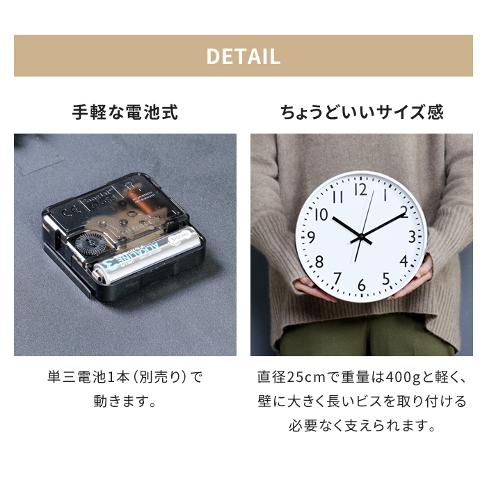 | 時計 壁掛け時計 静音仕様 幅25cm ウォールクロック 見やすい 電池 立て掛け 北欧テイスト おしゃれ シンプル インテリア とけい クロック 掛時計 置き時計 連続秒針 壁掛け カチカチ音がしない 静音 サイレント 北欧風 モダン 可愛い アナログ 壁面 リビング ダイニング 子ども部屋 寝室 |