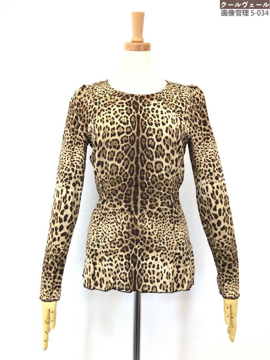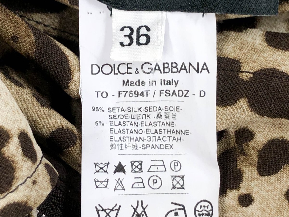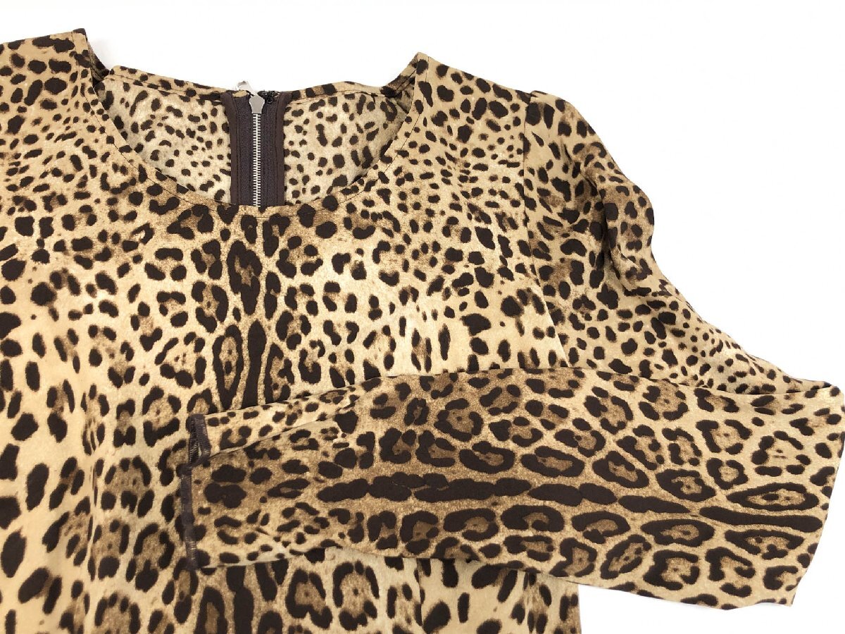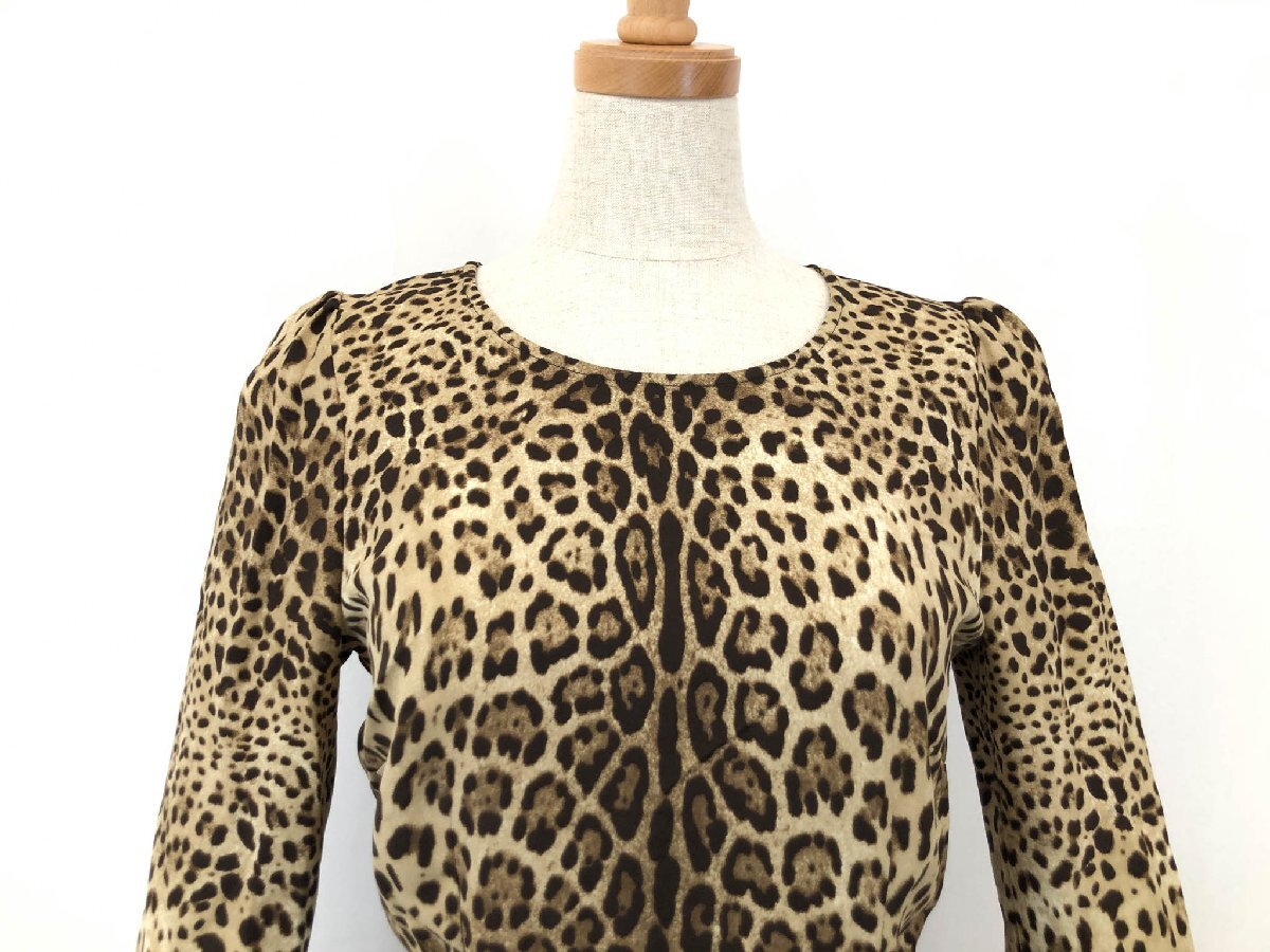 超美品【ドルチェアンドガッバーナ】F7694T/FSADZ シルク95% レオパード柄 バックジップブラウス(レディース) 36 茶系 伊製 ◇17LK2503◇