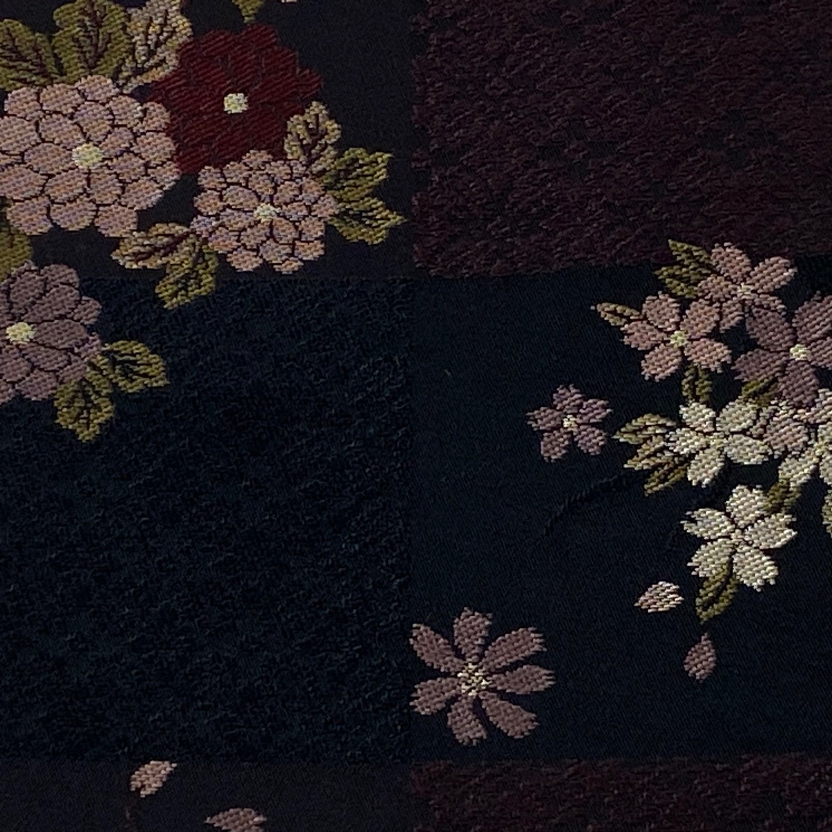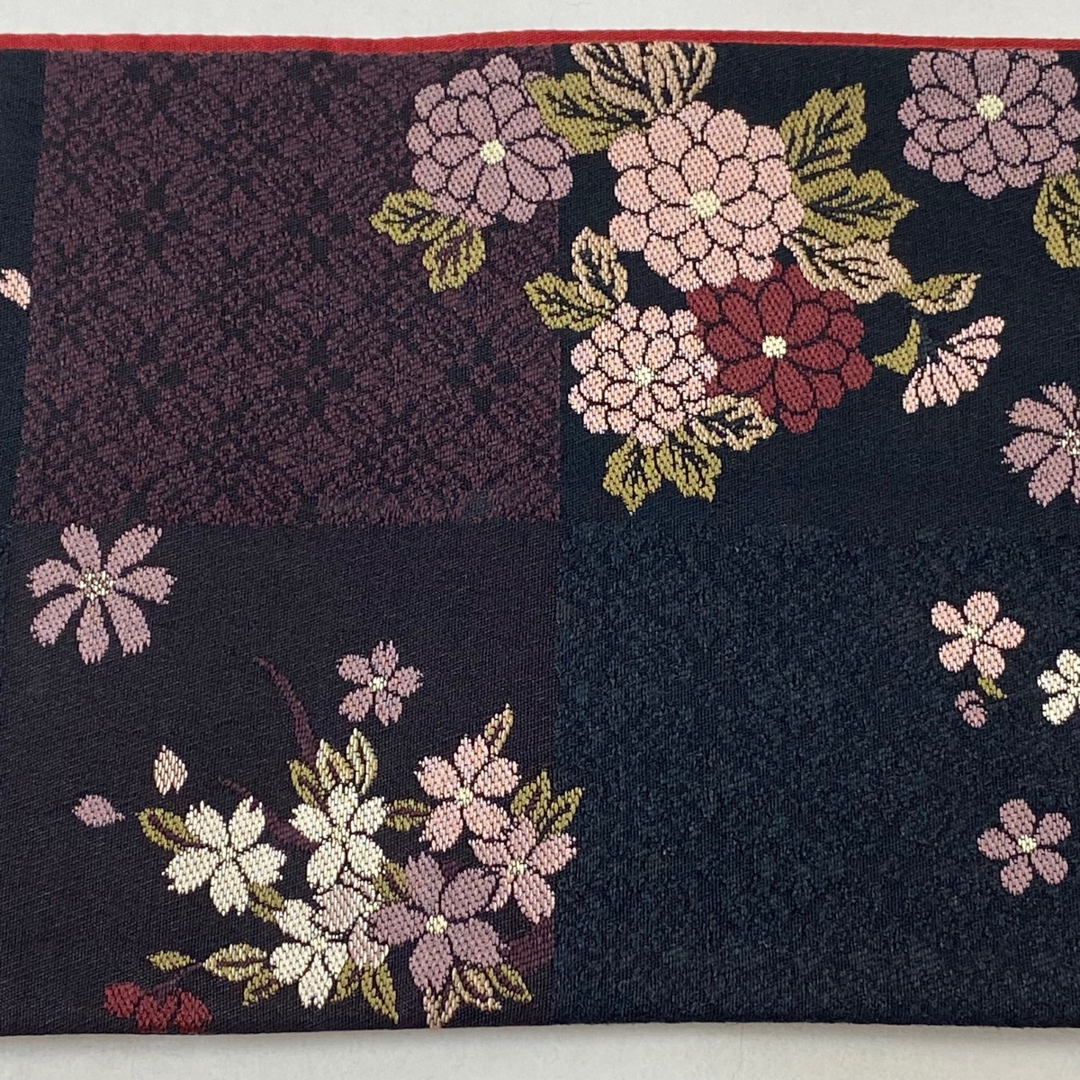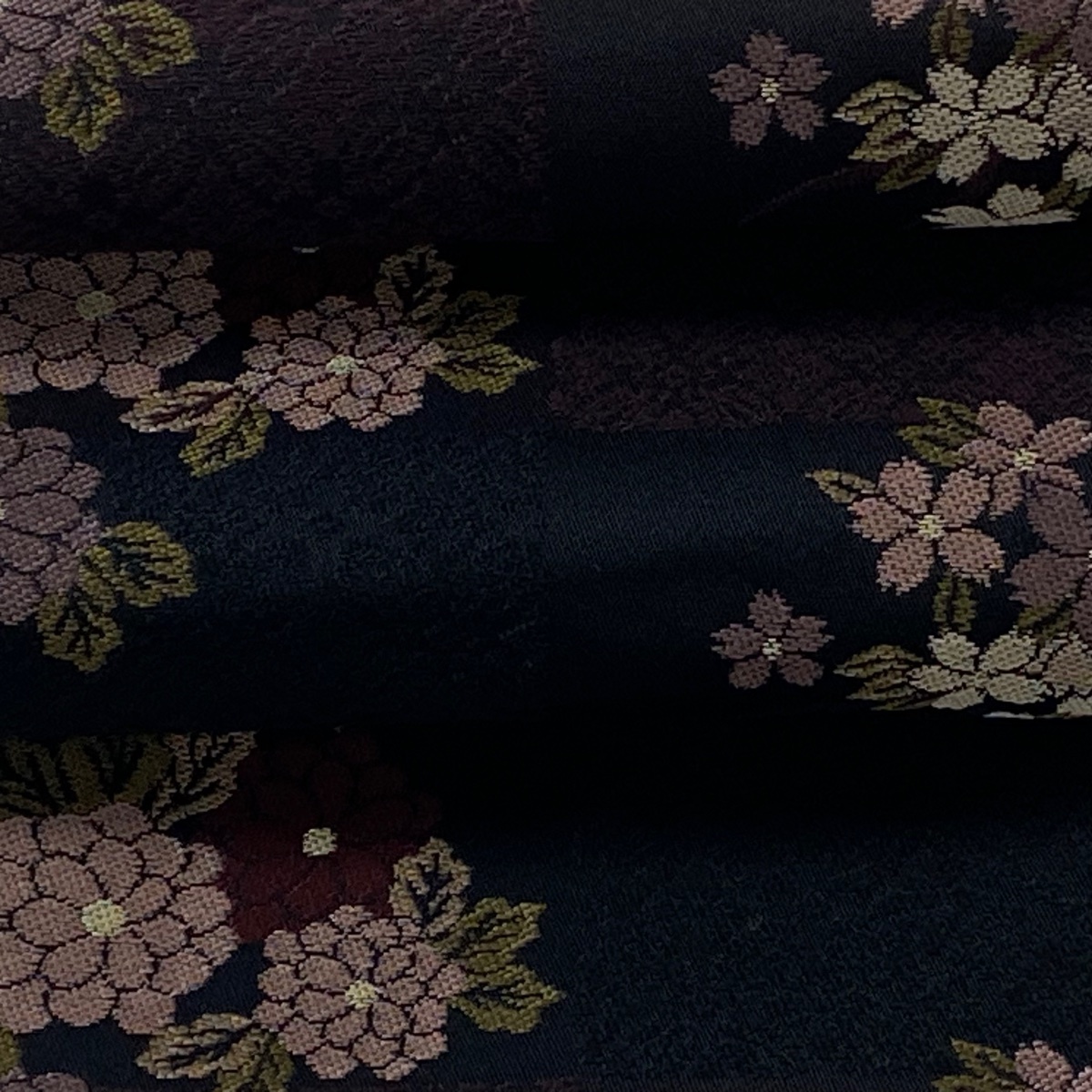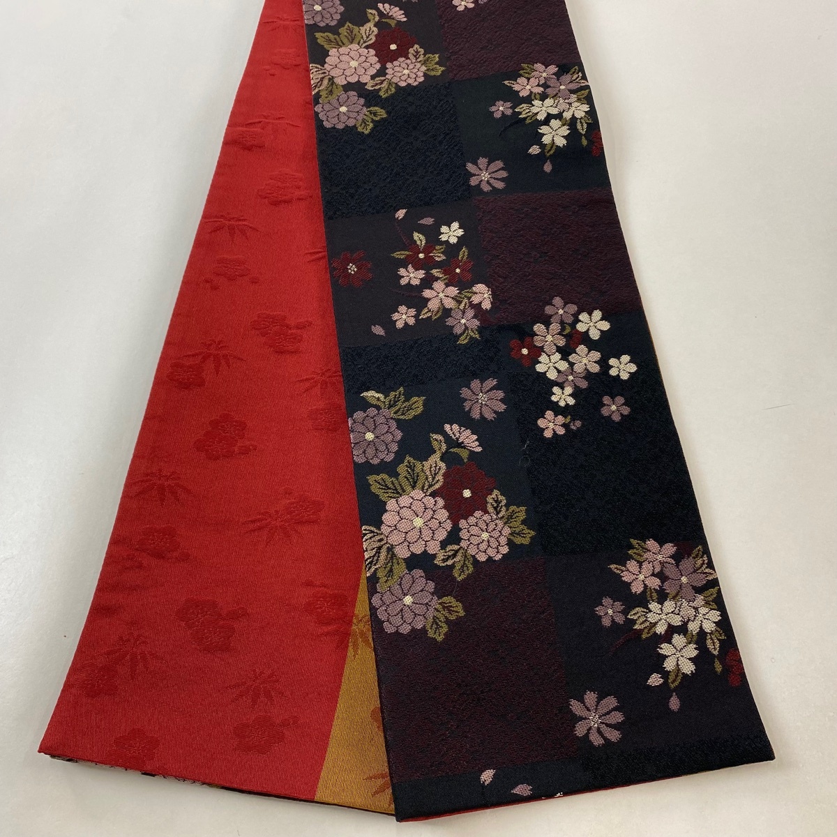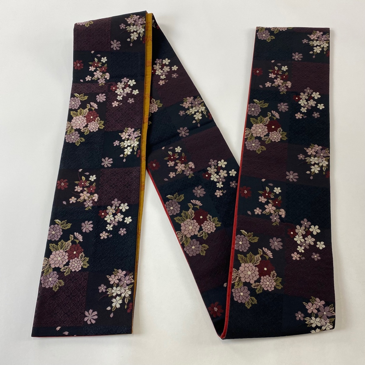 | 半幅帯 優品 草花 市松 黒 化繊 【中古】 |
