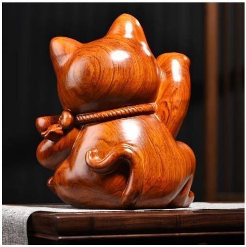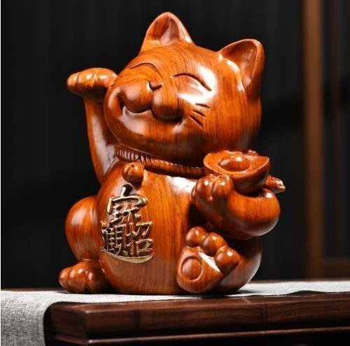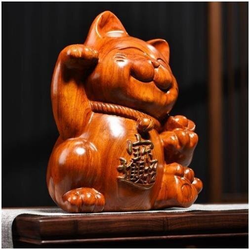 美品☆ 花梨木彫 招き猫 玄関 客間の置物 招財 職人手作り 木彫り インテリア 開運 仏像 子宝 まねきねこ