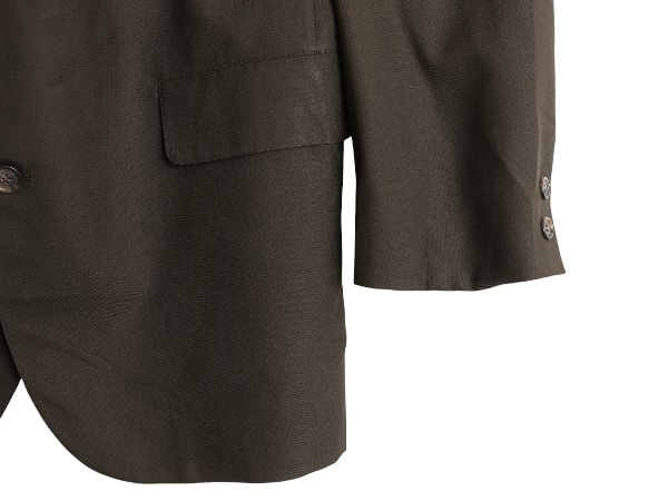 90年代のオールド ブルックスブラザーズ のテーラードジャケットです。 素材は、100% WOOL しっかりと目の詰まったウール生地 羊毛を細く撚った生地天然素材ならではの通気性と清涼感があり サラリとした肌触り、丈夫でシワになりにくいのが特徴のウール まったくチクチク感のない上質な素材 年間を通して着て頂ける素材が使用されています。 内側に脱ぎ着のしやすいスムースライナーが付きます。 MADE IN USA ( アメリカ製 ) フロントは、クラシカルな段返り 3つボタン 3ポケット、サイドポケットはフラップ付き センターベントのクラシカルなデザイン 合わせやすい落ち着いたオリーブグリーン なかなか見かけない渋めのグッドカラー 流行に左右されない、トラディショナルで 使い勝手の良いシンプルなグッドデザイン 200年を超える歴史を持つブルックブラザーズ 丁寧な仕立て、高級感のあるルックス シルエットの美しさは言うまでもありません 入手困難な90年代のオールド アメリカ製 カーキグリーン こう言った商品はいつでも手に入る物ではありません。 どこに出かけても恥ずかしくない 洒落た大人のジャケット ブルックスブラザーズのセンスと美学が伺える商品です。 |