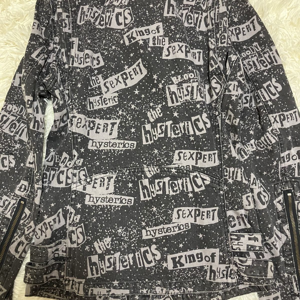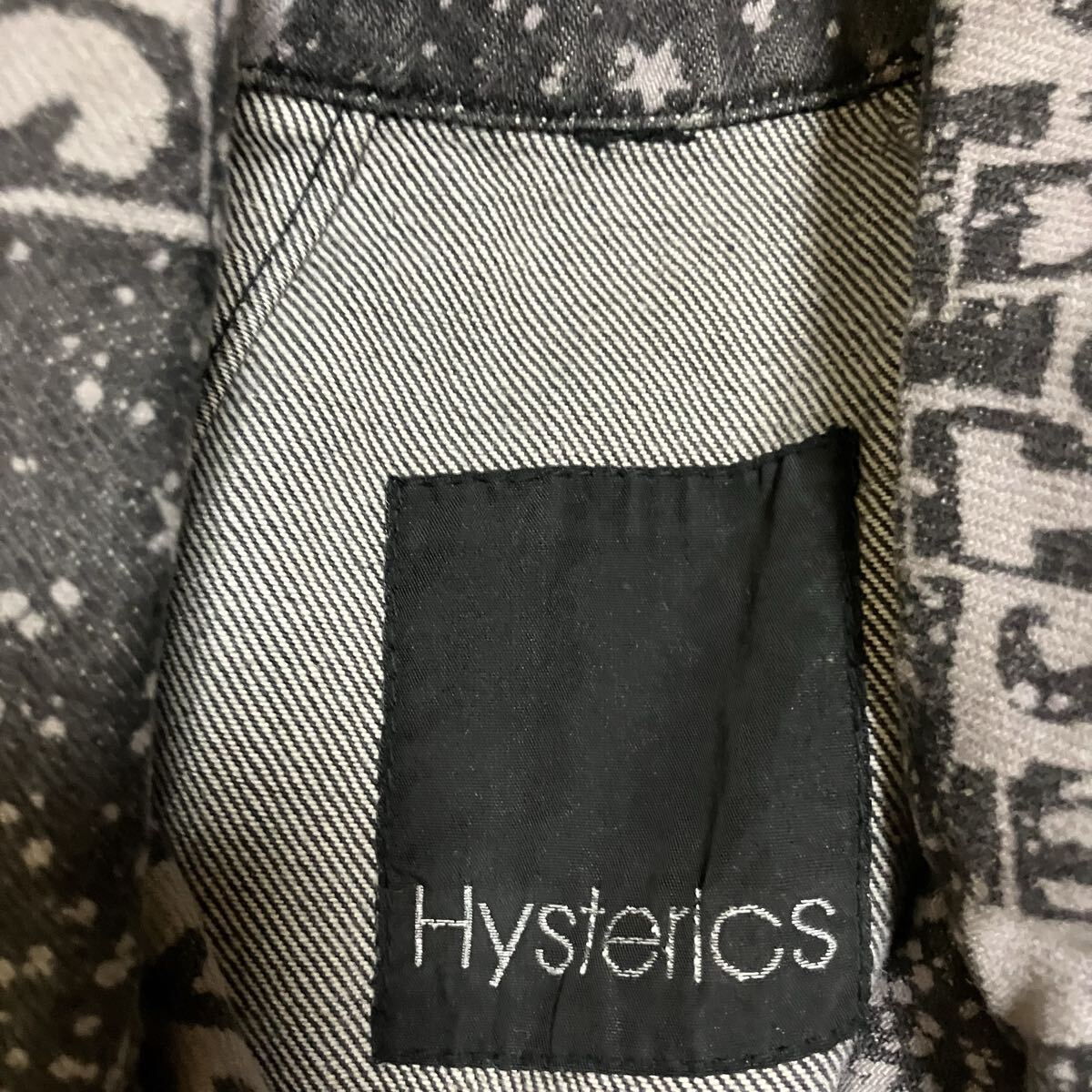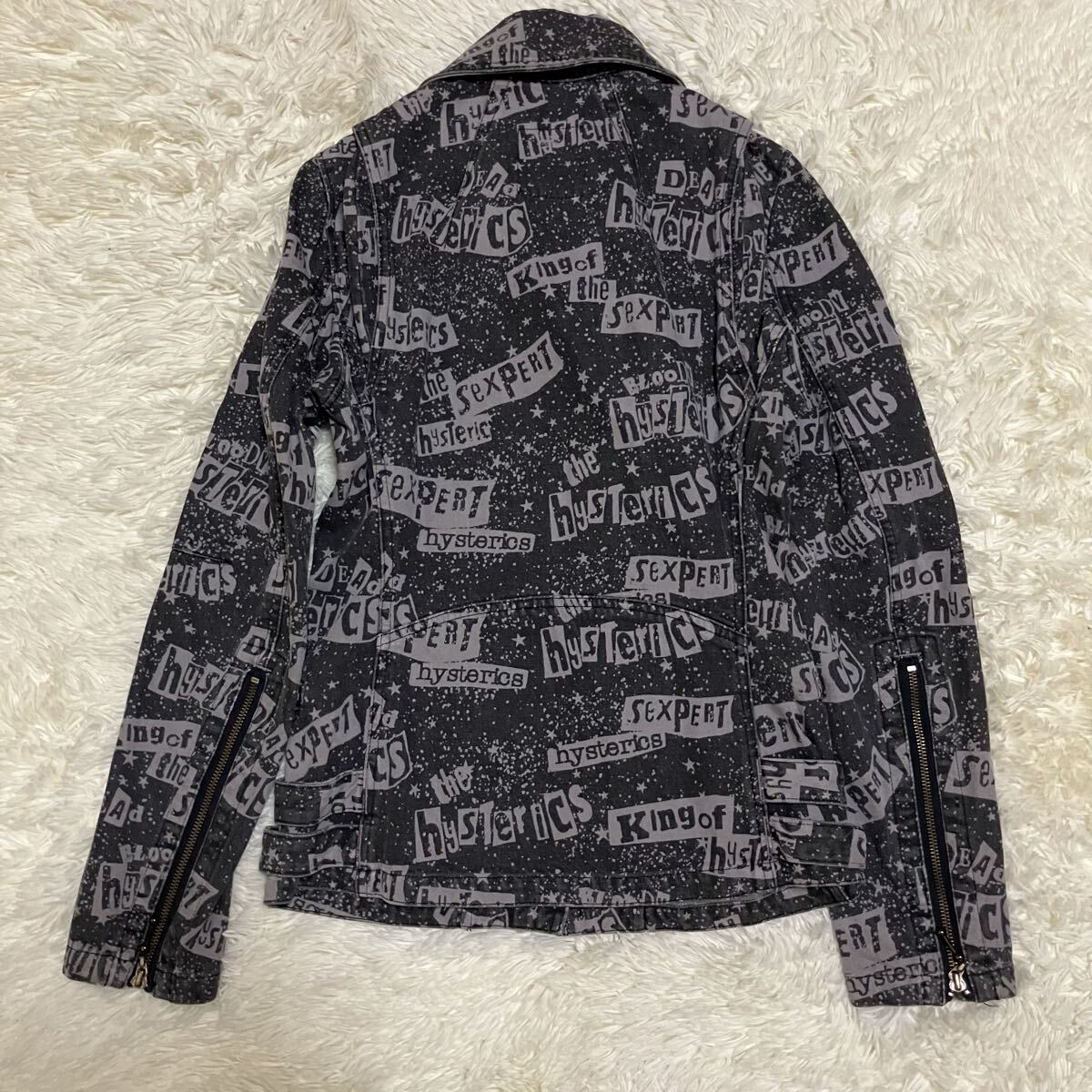 ヒステリックスの総柄、ロゴデザインのデニム生地のダブルライダースです。かなり希少なお品かと思います。未使用タグ付き品です。