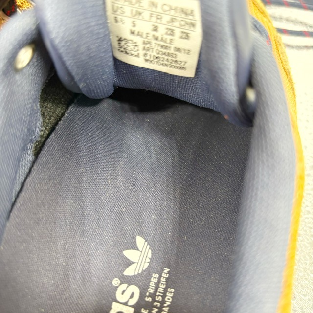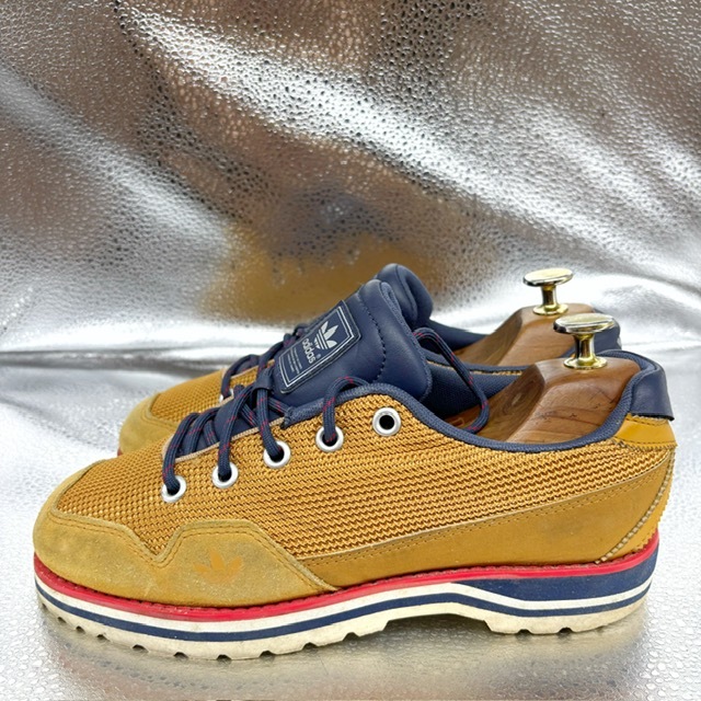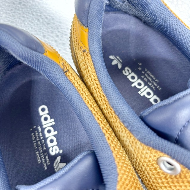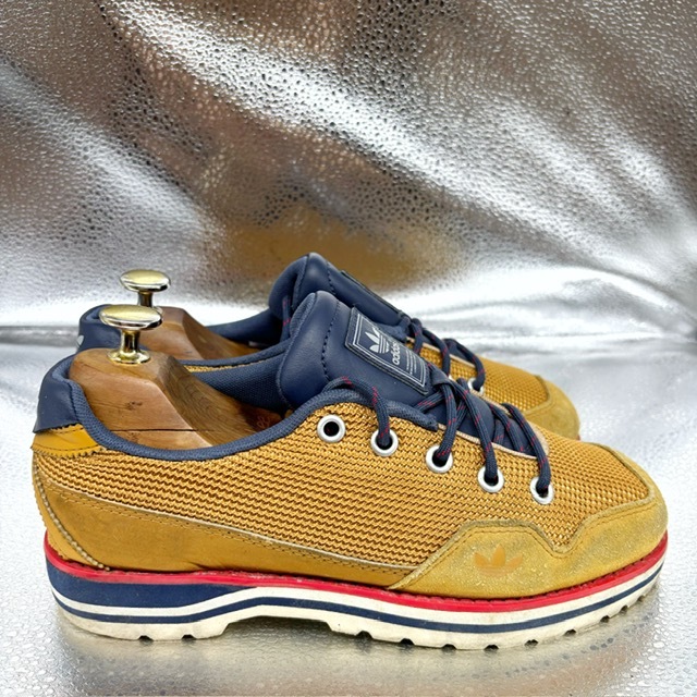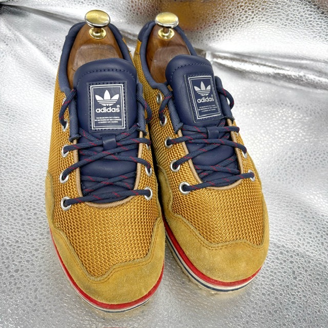 ご覧いただき、ありがとうございます。 オシャレで高級感のあるadidas アディダスのスポーツシューズです。 デザイン性:機能性共に定評のある商品です。 1足押さえてあるとファッションの幅も広がり大活躍するお勧めの商品です。 中古品のため、スレや傷、ヨゴレ等ありますが、その分お値打ちにしております。詳しい状態は画像でご確認ください。 商品のサイズについて 表記サイズ 23.5cm アウトソール全長 約25.2cm 全幅 約8.8cm (素人採寸) ●状態①「外観」 履きジワ、着用に伴う擦れ、傷がございますが、着用に支障はございません。くわしくは画像で確認ください。 ●状態②「ソール・インナー」 インソール内ロゴ残っています。 ●その他・付属等なし、シューズキーパーは撮影用です。 | |||