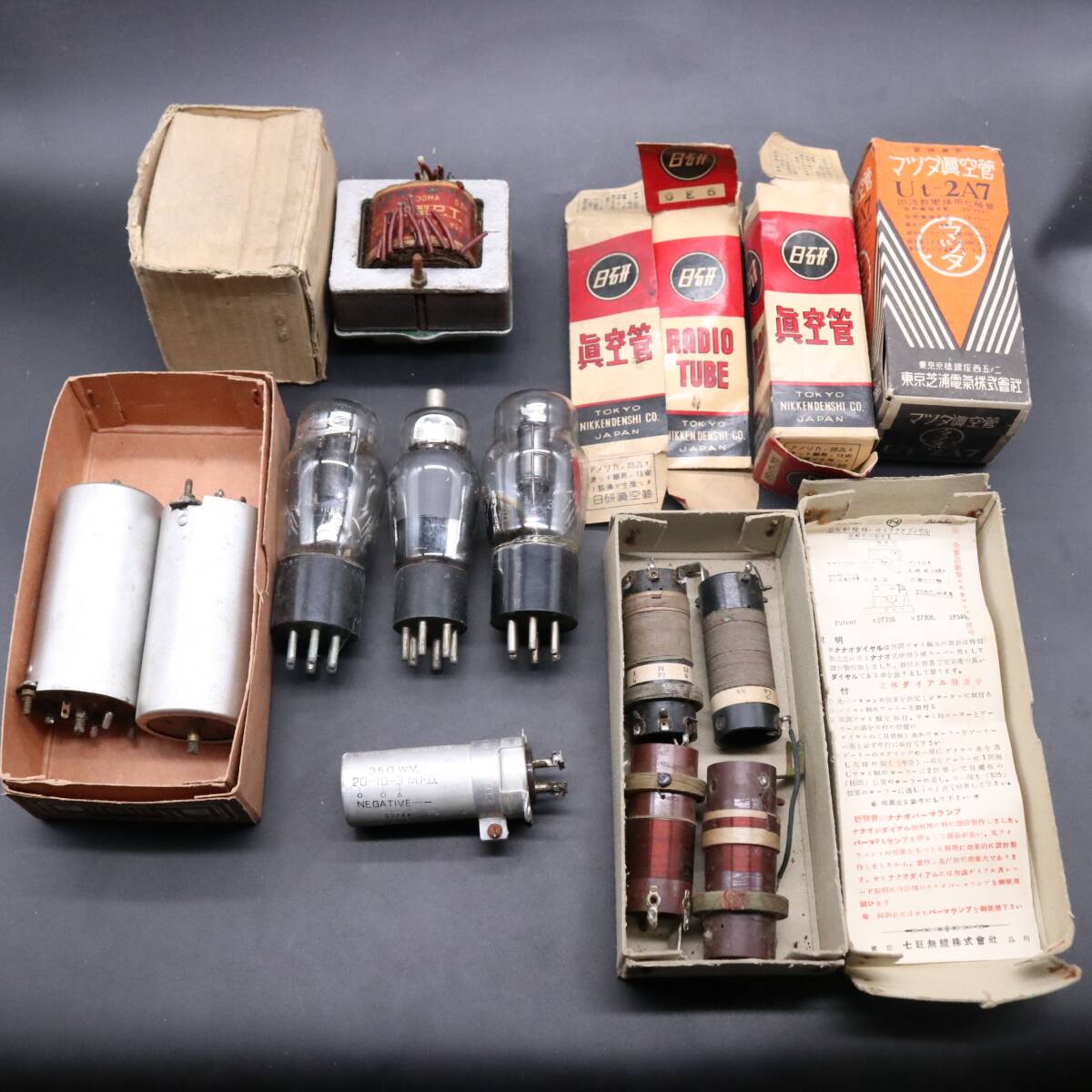 A1231 当時物 真空管ラジオ 部品 パーツ まとめて マツダ真空管 コイル トランス 暁電波製作所 コンデンサー 昭和レトロ 画像参照 現状品