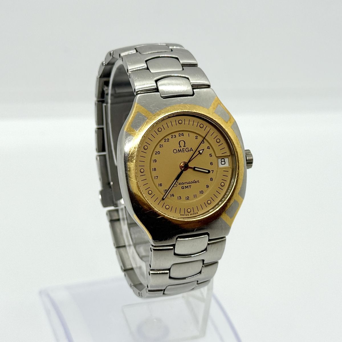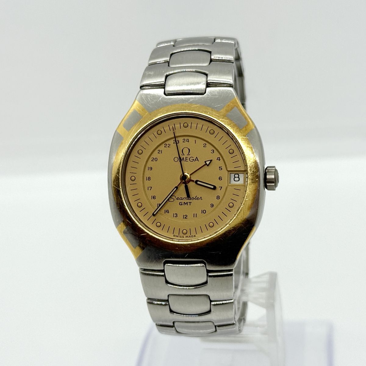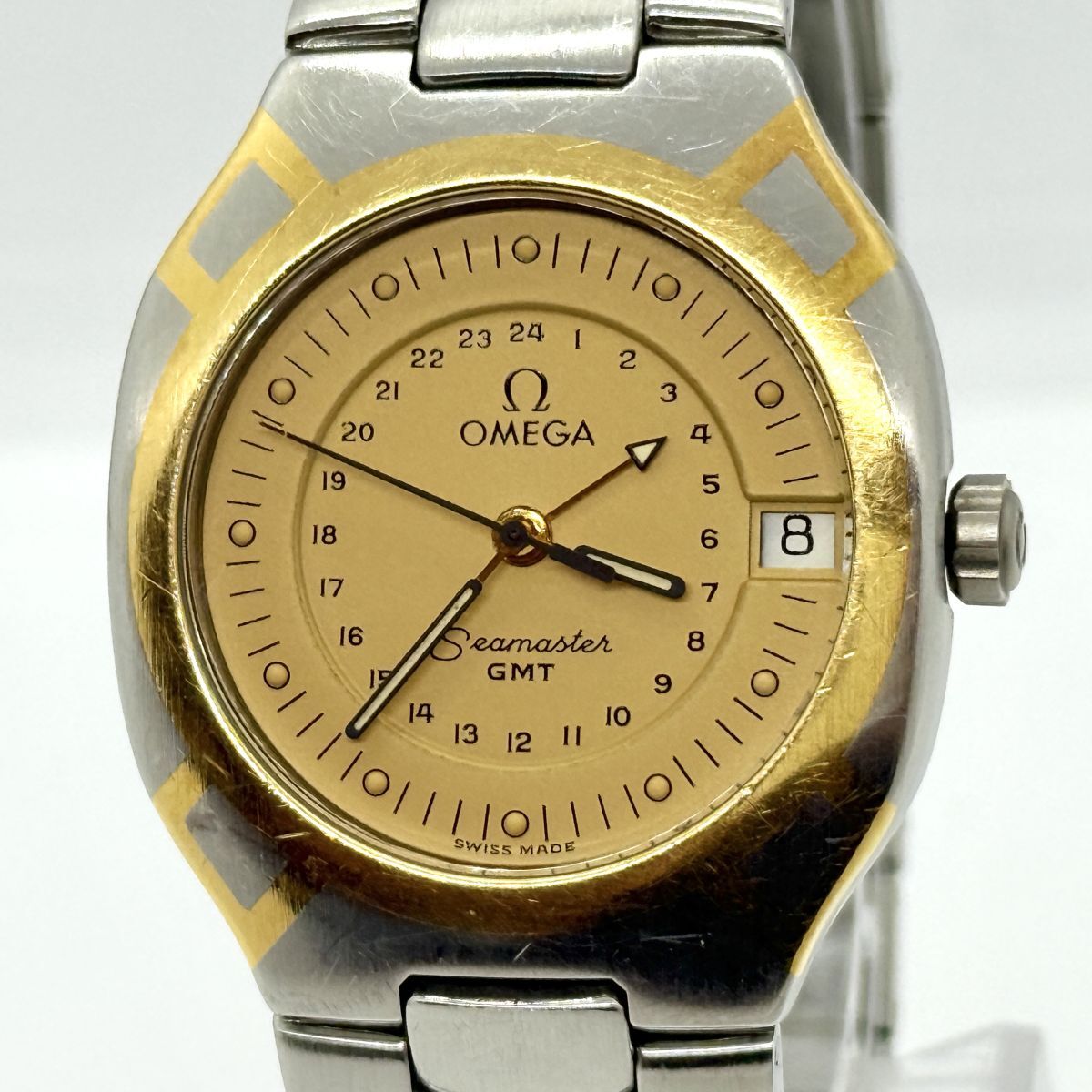 OMEGA オメガ シーマスター ポラリス GMT SS×YG SS QZ 稼働品 シャンパン文字盤 メンズ 腕時計