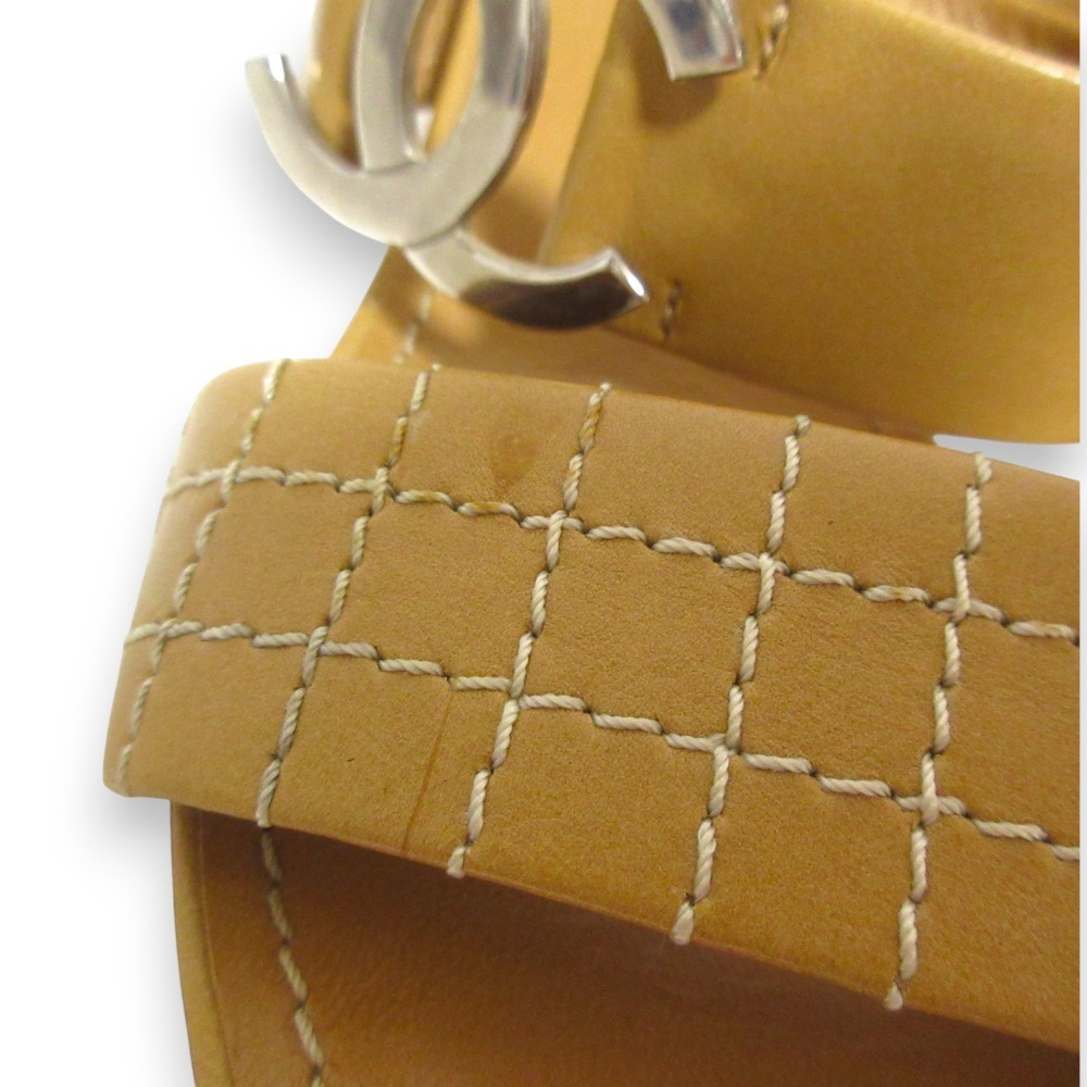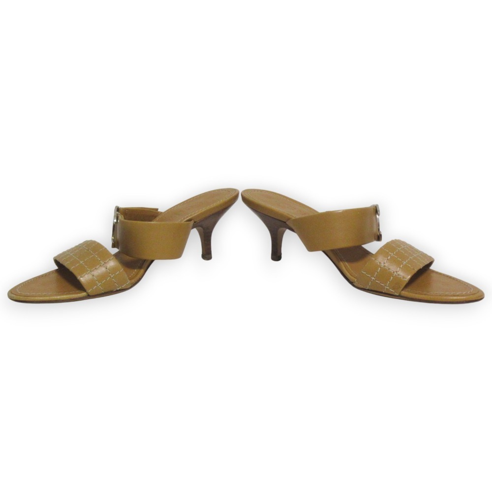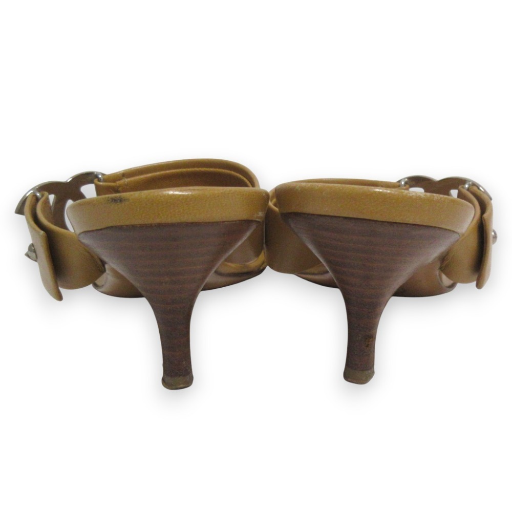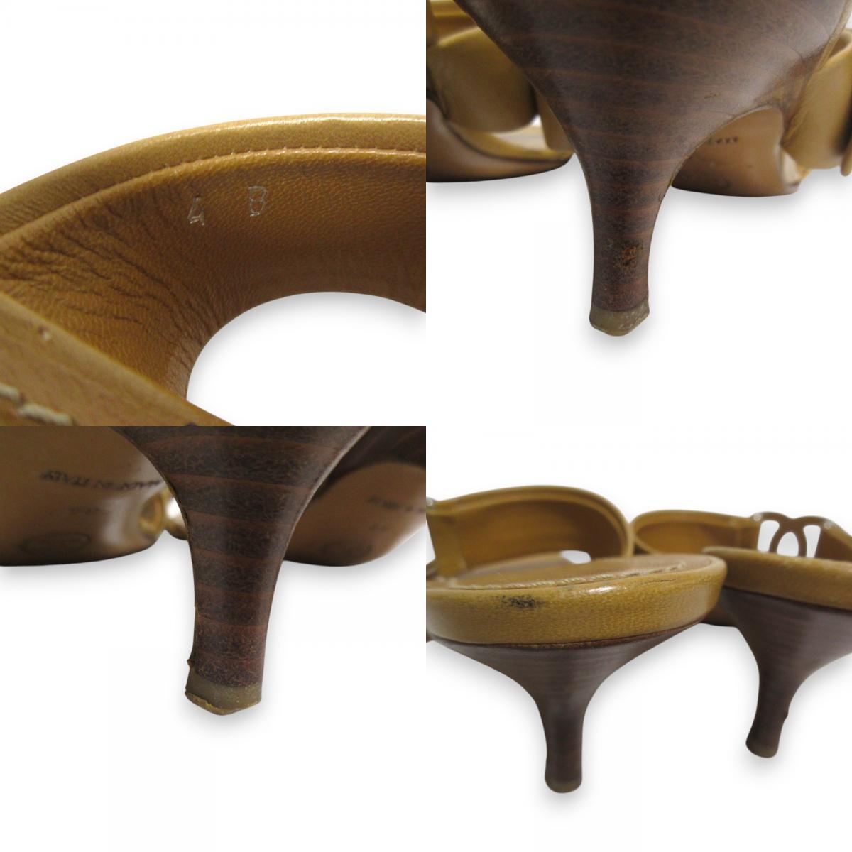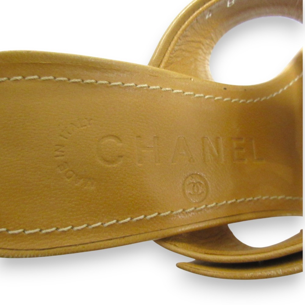 良品 CHANEL シャネル ココマーク ダブルストラップ ヒール サンダル ミュール 34 約21cm ベージュブラウン×シルバー金具