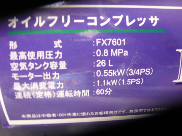 | ◆使用頻度僅かな美品・エアーコンプレッサー アネスト岩田 静音オイルフリー コンプレッサ ピクシー FX7601 ANEST IWATA カインズ\49,800-の品 | |