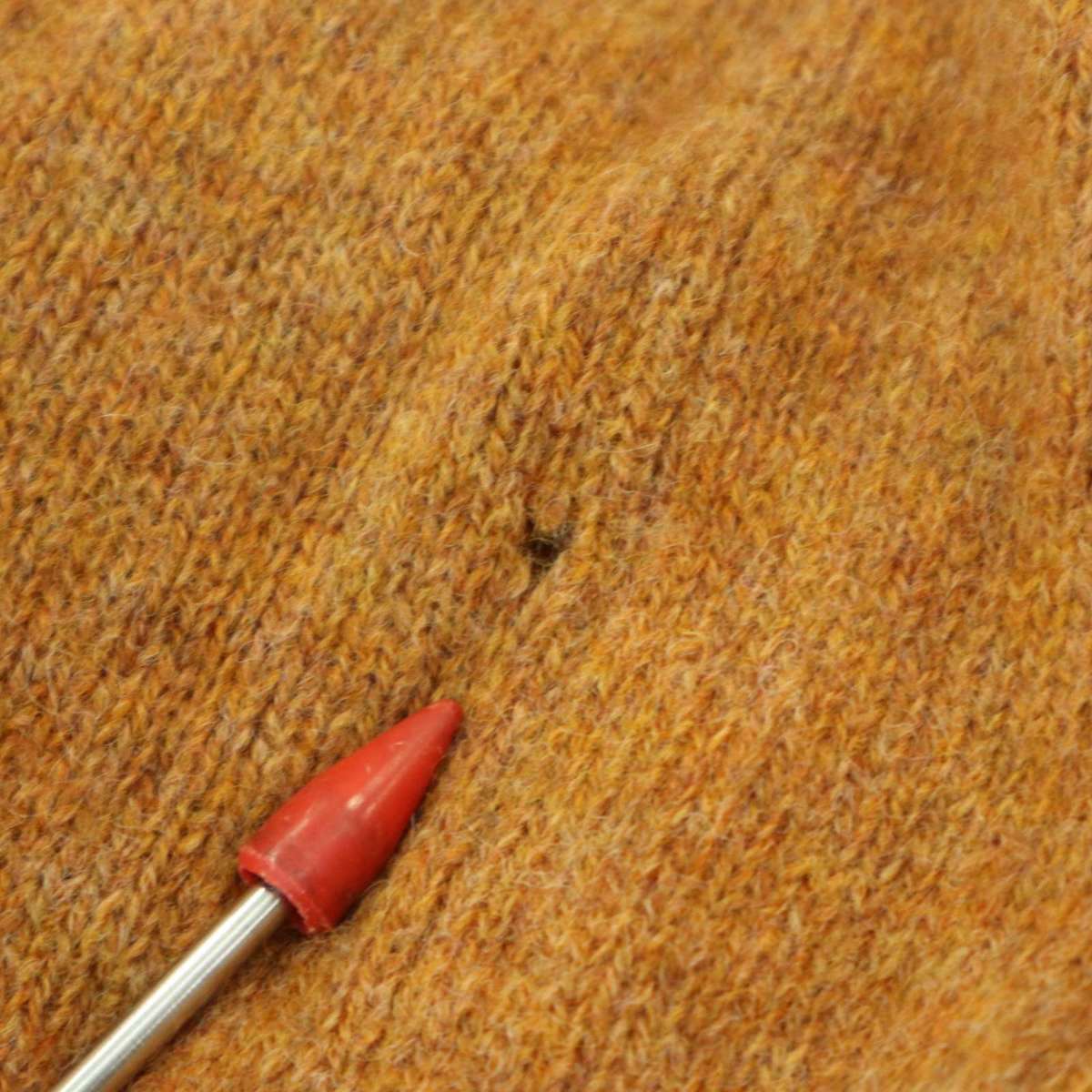 右脇裾に小さな穴がございます。問題なくご着用頂けます。