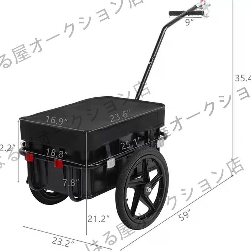 自転車カーゴトレーラー 取り外し可能なボックス&防水カバー付き 自転車ワゴントレーラー ンチホイール カート リフレクター付き