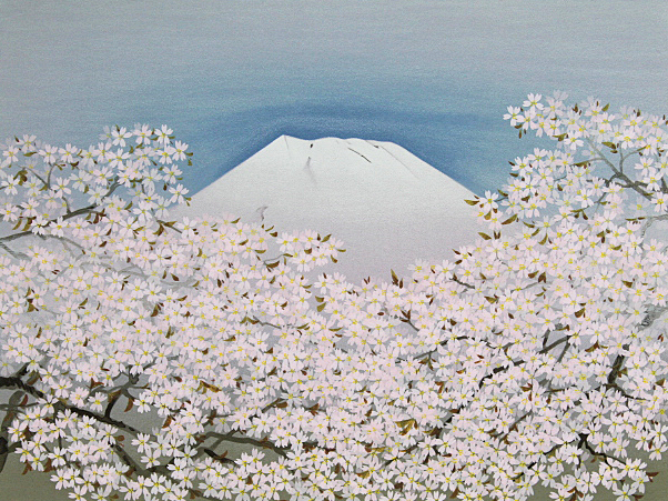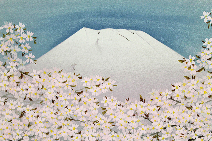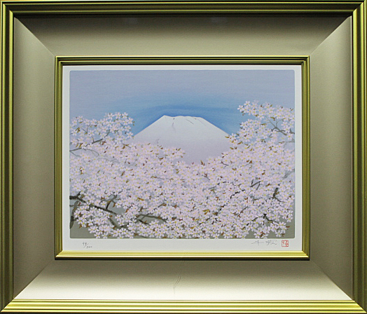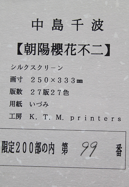 ■★中島千波 【朝陽櫻花不二】 シルクスクリーン 直筆サイン 印章有り エディション有り