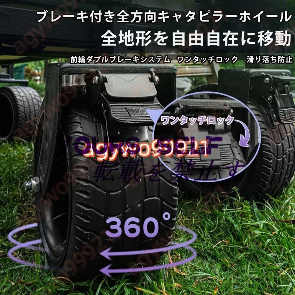 【移動の安全性】屋台はベアリング入りのユニバーサルホイールを装備しており、スムーズで省力な押し引きが可能です。前輪はダブルブレーキ設計、ワンボタンロックの滑り止めスロープにより、屋台でもキャンプでも、移動が簡単で、駐車がより安定します。
