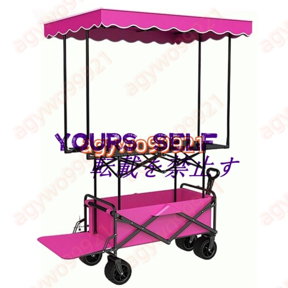 屋台セット 屋台ブース 折りたたみ式収納 厚手600Dオックスフォード生地 前輪ダブルブレーキ付き プッシュプル一体型ハンドル 収納ポケットデザイン キャンプ/マルシェ/フリーマーケット/コーヒースタンド対応 簡単組み立て(ピンク)